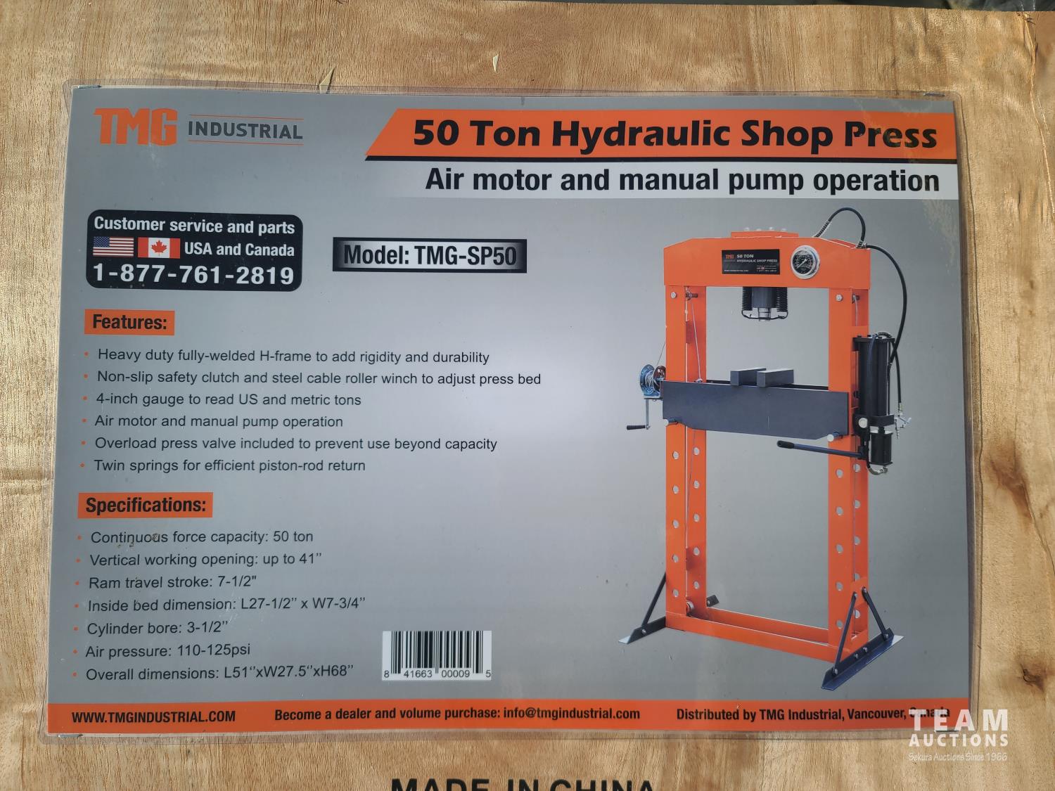 37 TMG Industrial TMG-SP50 50 Ton Capacity Hydraulic Shop Press (Unused)