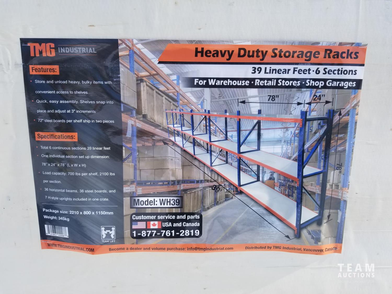 44 TMG Industrial TMG-WH39 39 Ft Metal Garage/Workshop Storage Shelves (Unused)
