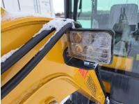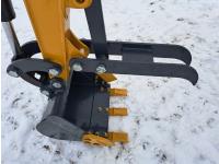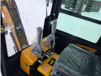 Enclosed cab, gas engine, 36 inch backfill blade, air circulating fan, windshield wiper, 420cc ( 15 hp engine ) , 16 inch dig bucket, hydraulic Q/C coupler, manual thumb, 1 auxiliary hydraulics, 2 Ft 8 inch stick, 48 inch rubber tracks, 7 inch track pads