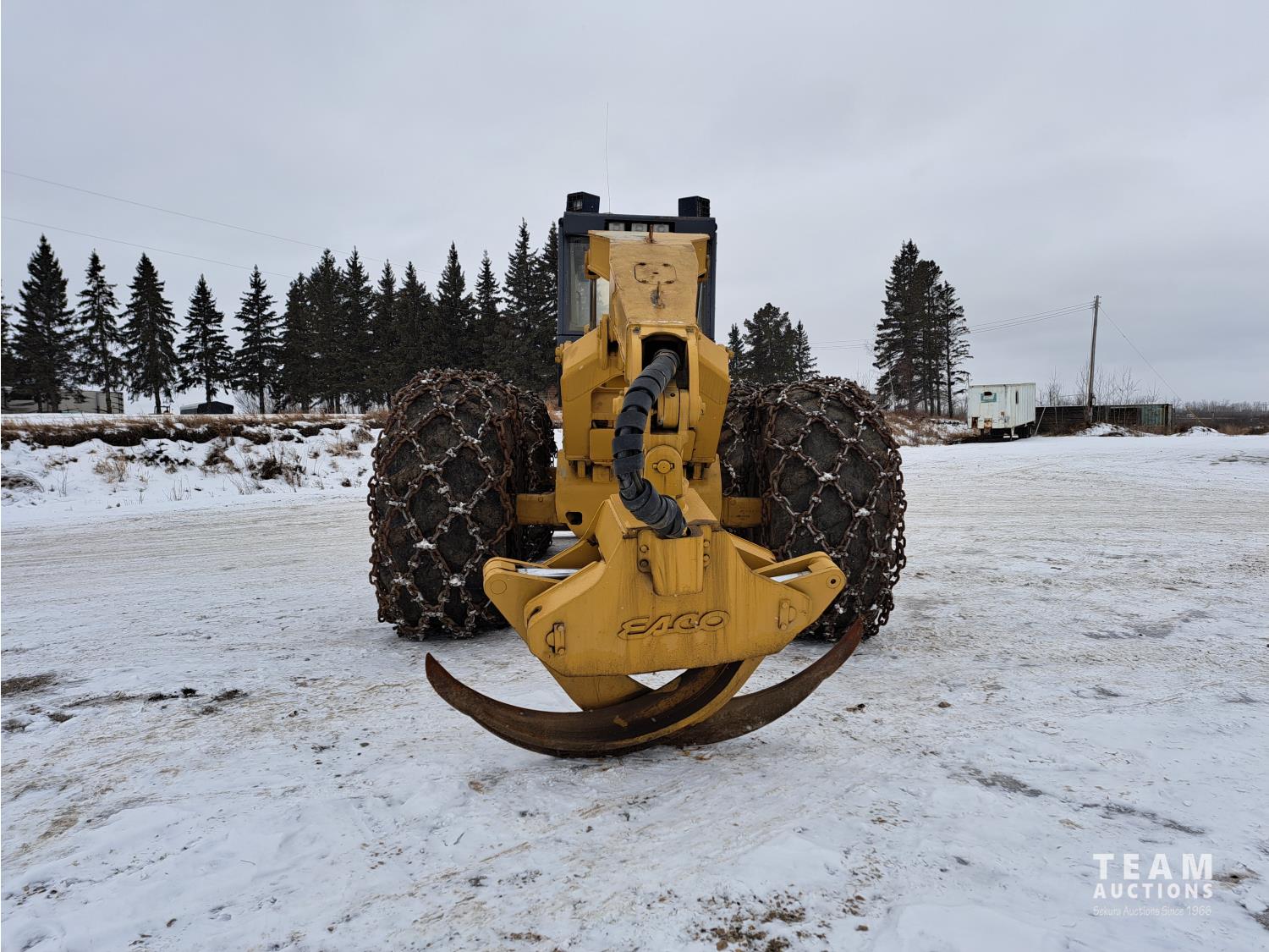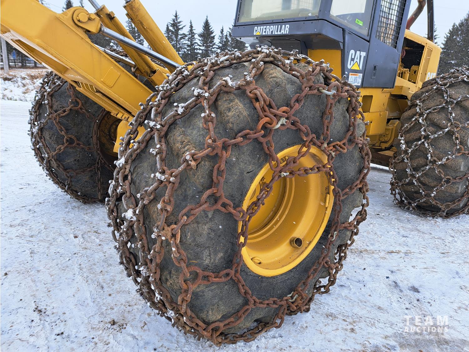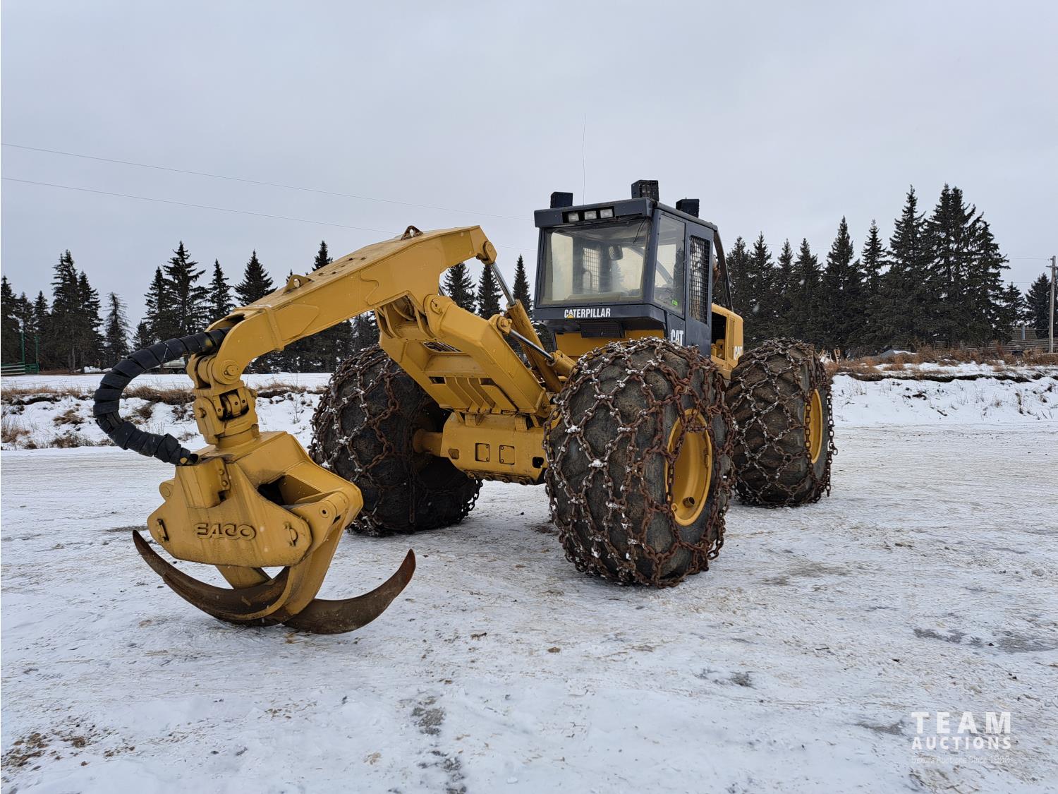 3304 Cat motor, 105 inch blade, Esco sorting log grapple, A/C stereo, tire chains, 30.5L-32 tires