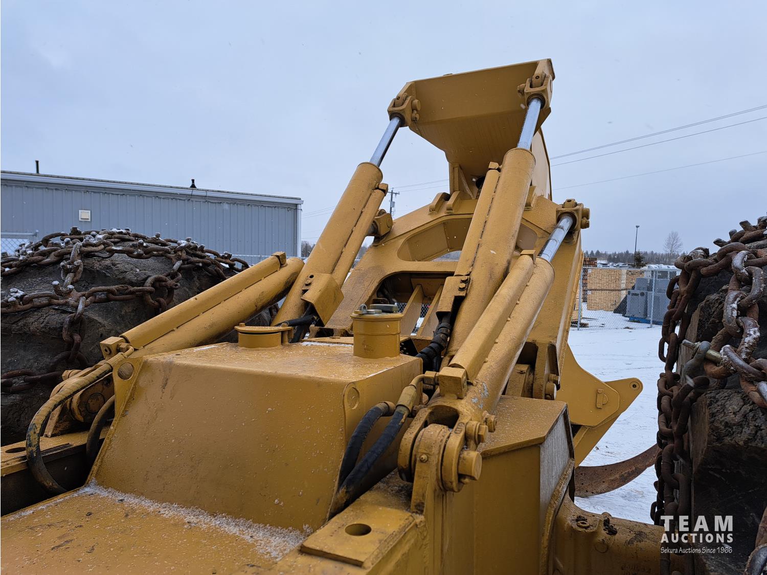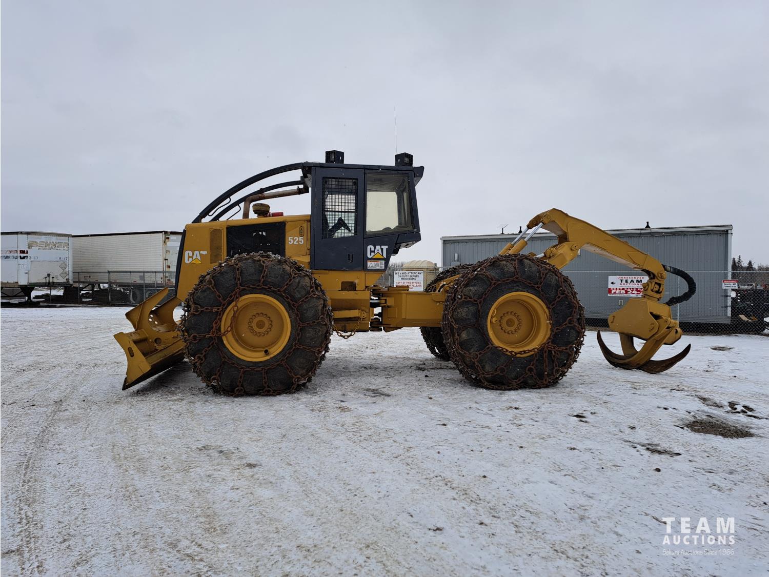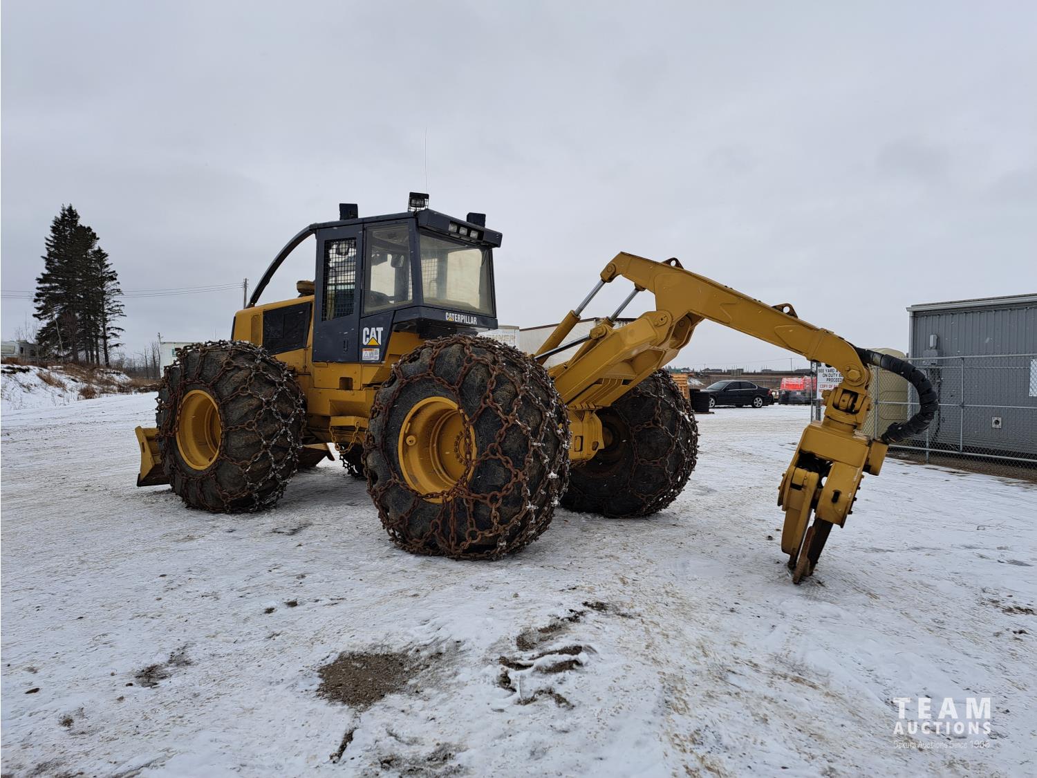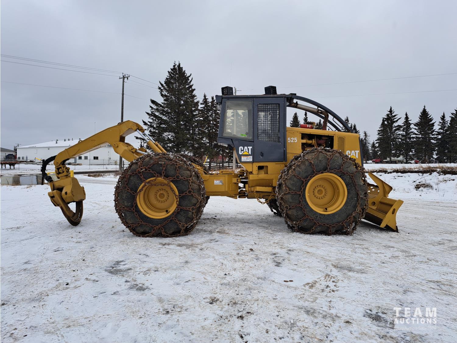3304 Cat motor, 105 inch blade, Esco sorting log grapple, A/C stereo, tire chains, 30.5L-32 tires