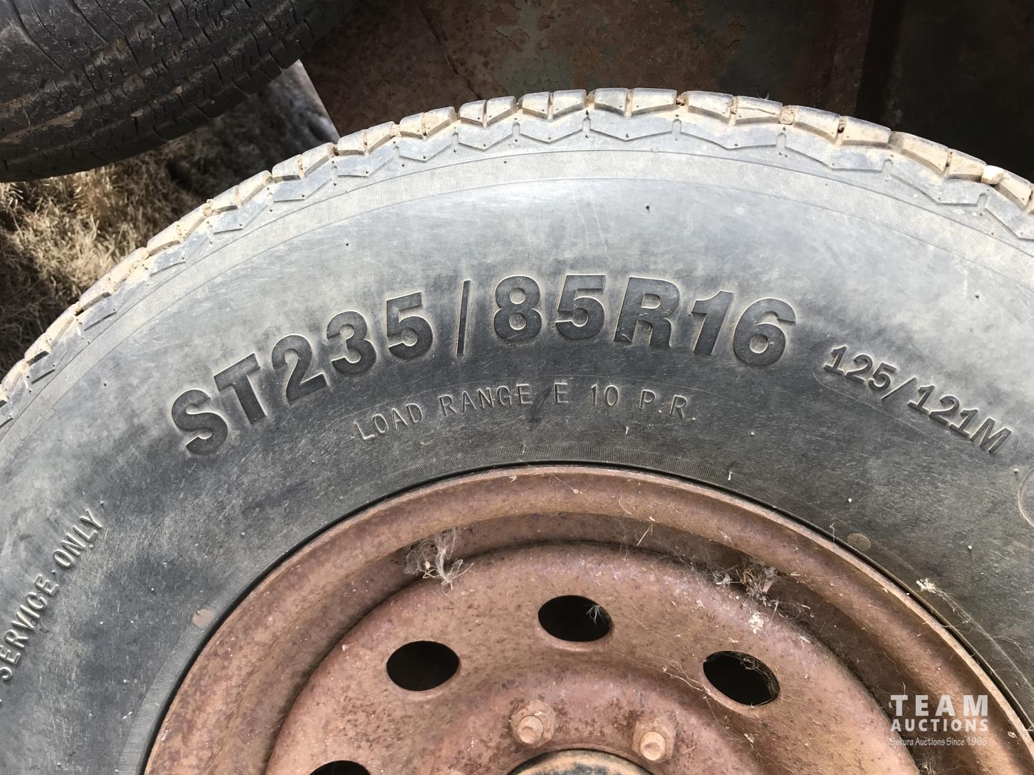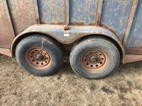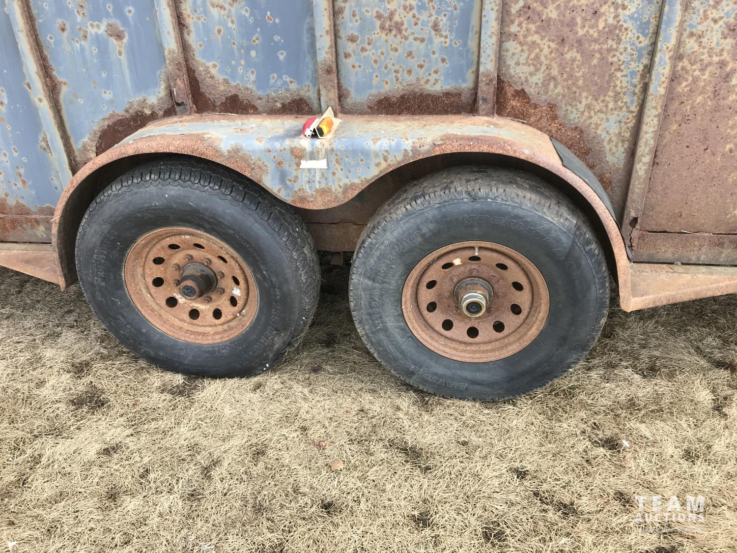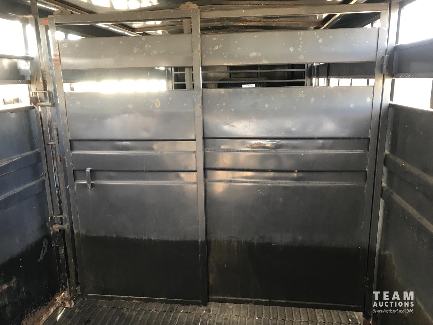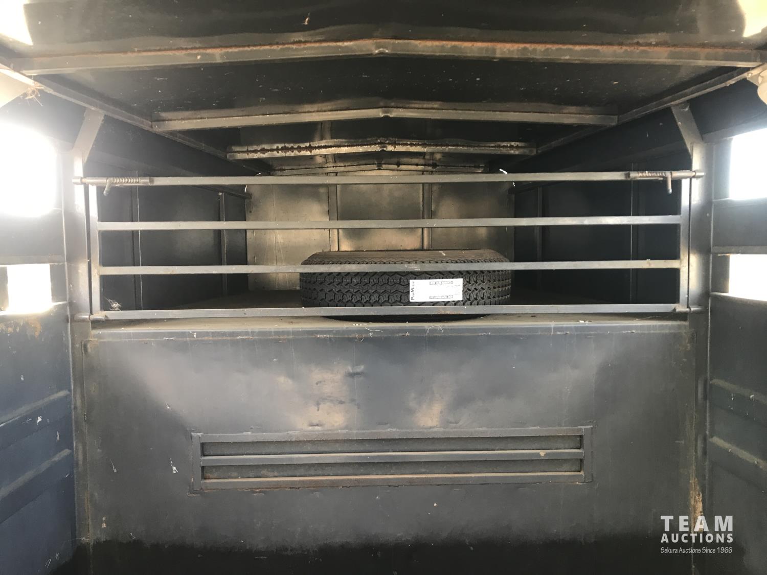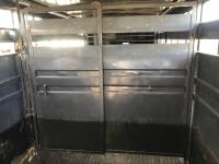 inside measurements 80 inch wide, 78 inch high, righthand man door, center divider with sliding door, front storage over 5TH wheel, rubber floor mats, rear full swing door with sliding gate, torsion axles, 235/85R16 tires