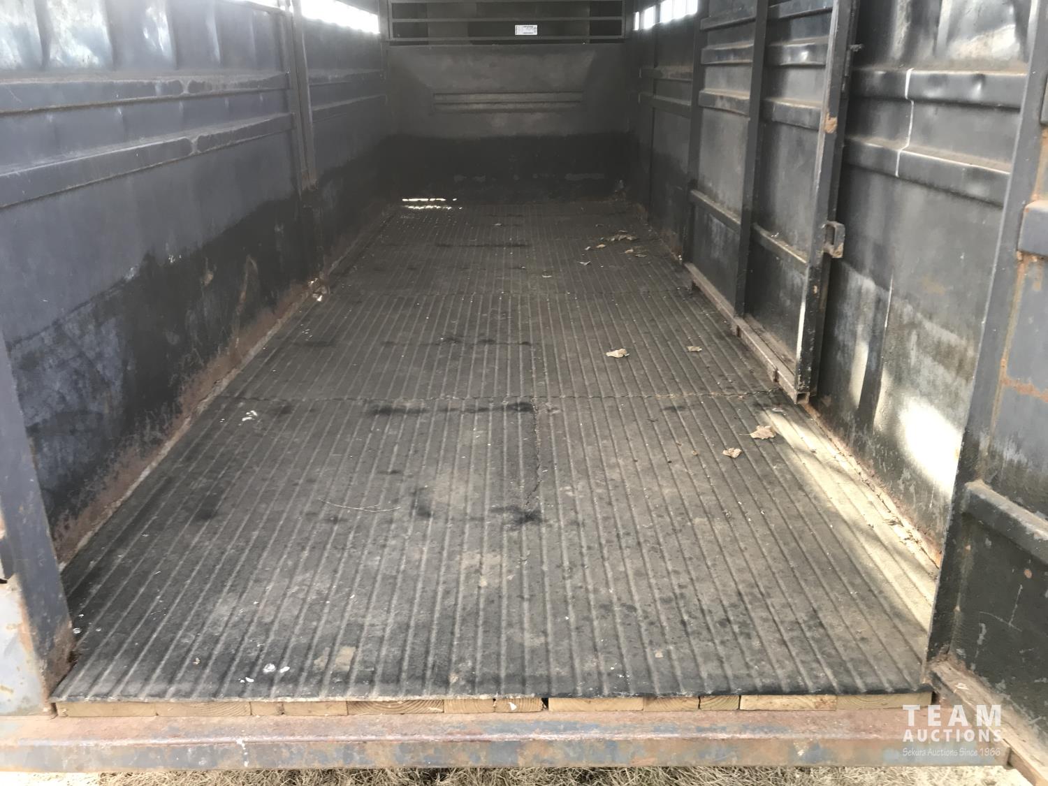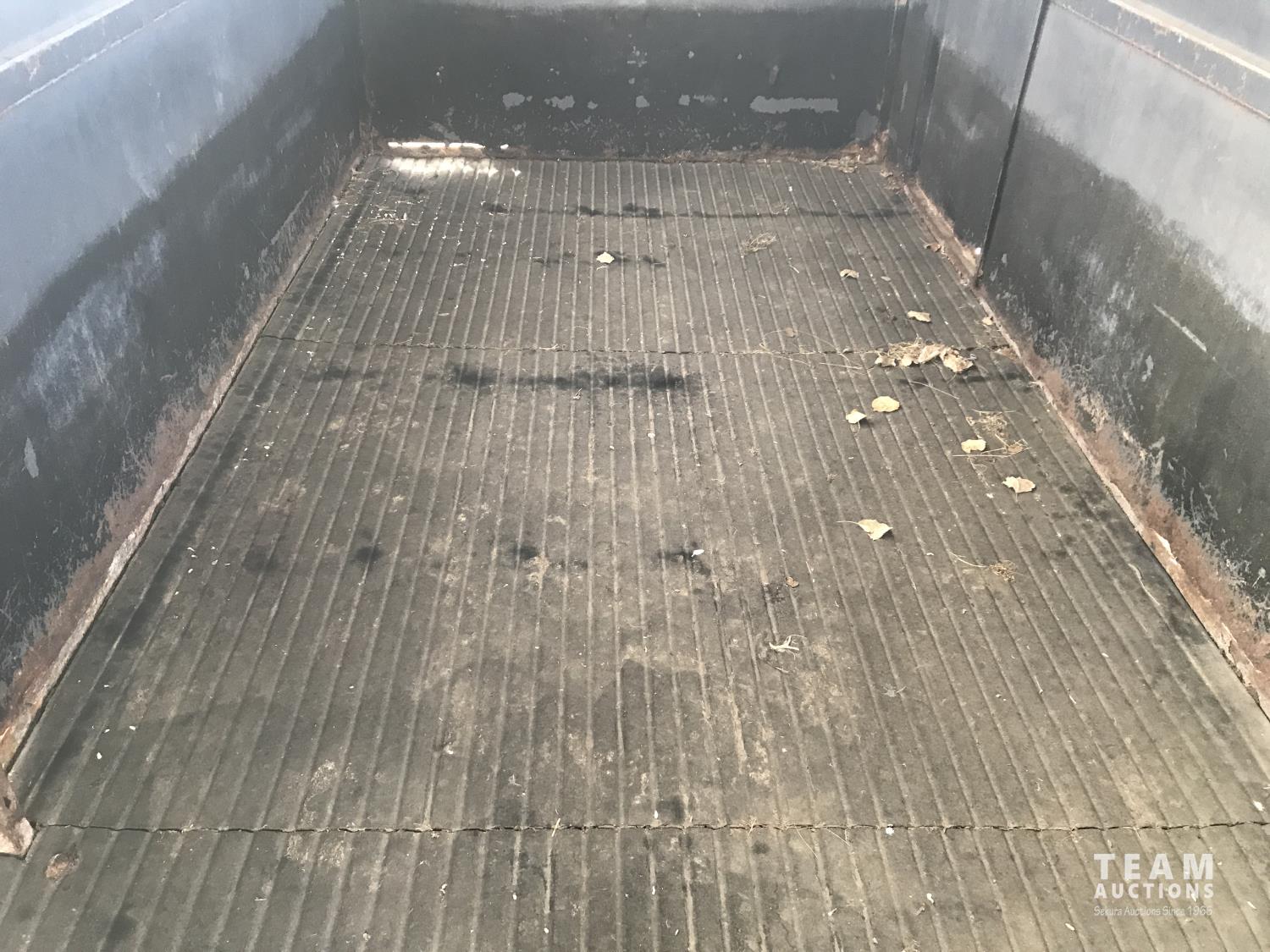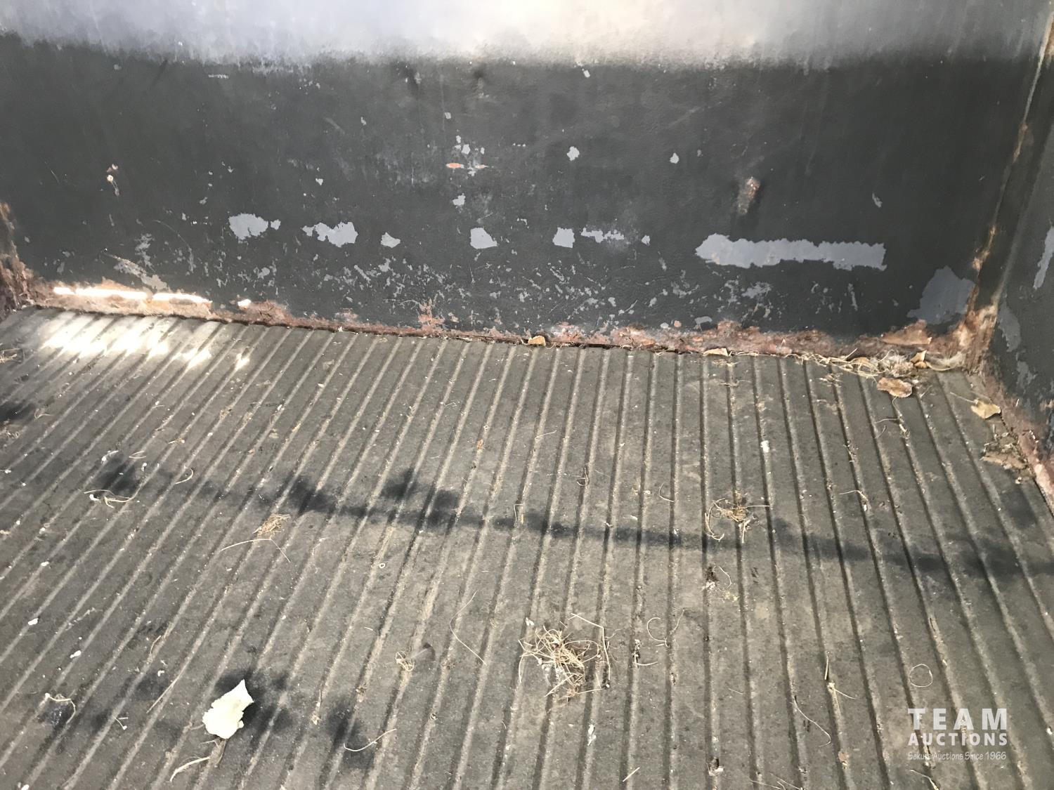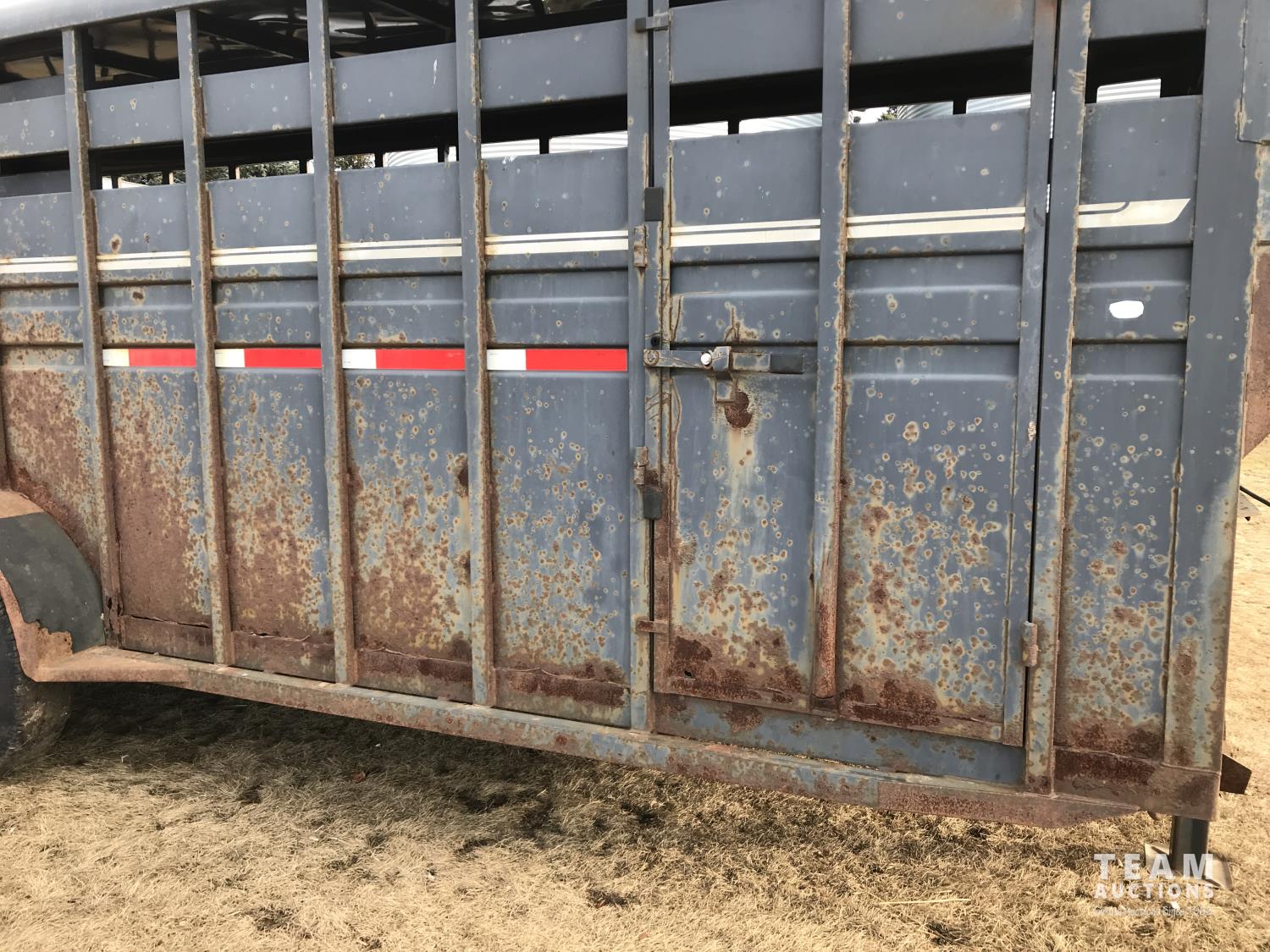 inside measurements 80 inch wide, 78 inch high, righthand man door, center divider with sliding door, front storage over 5TH wheel, rubber floor mats, rear full swing door with sliding gate, torsion axles, 235/85R16 tires