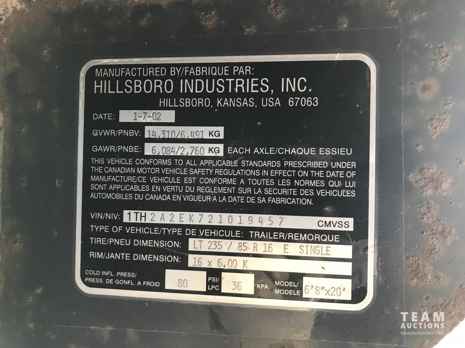 389 2002 Hillsboro 20 Ft T/A Gooseneck Livestock Trailer