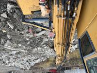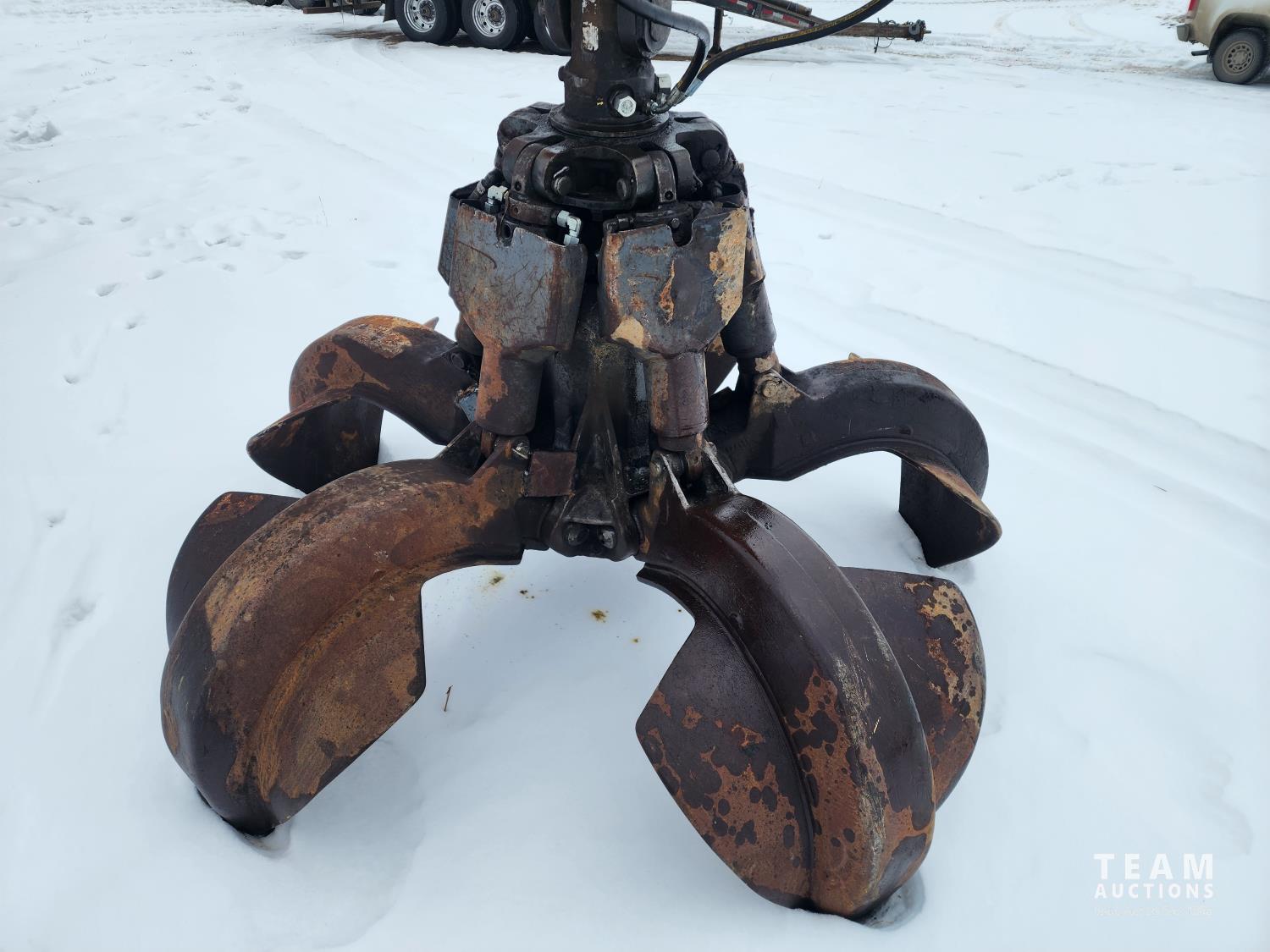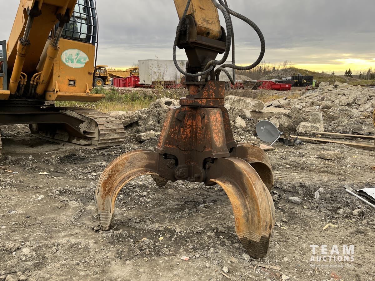 Five-Tine Orange Peel Scrap Grapple, axillary hydraulics, hydraulic tilt cab, catwalks, 28 inch double grouser pads, front window cab guard