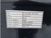 Open station, 15 HP gas engine, 16 inch dig bucket, hydraulic Q/C coupler, manual thumb, 1 auxiliary hydraulics, 2 Ft 8 inch stick, backfill blade, 48 inch rubber tracks, 7 inch track pads