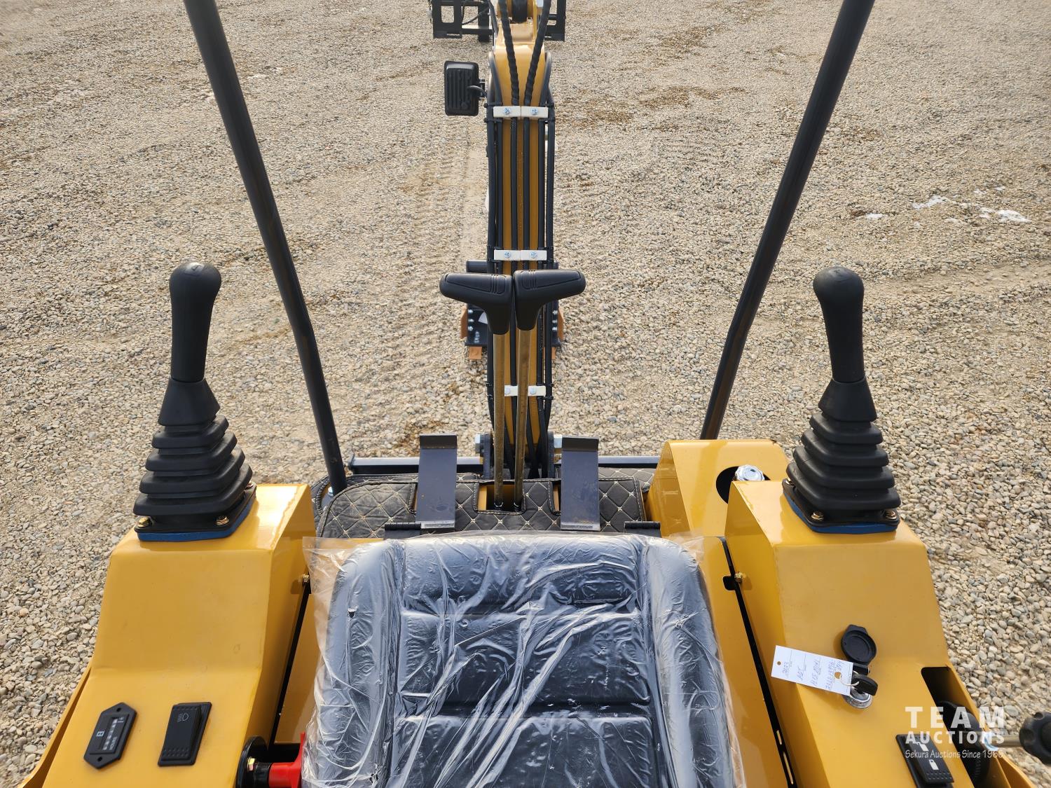 Briggs & Stratton 15 HP gas engine, 7 inch track width, 15 inch digging bucket, 38 inch blade, 31 inch stick, aux hydraulic, dozer, canopy