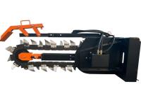 Manual or hydraulic side shift, 1/2 inch hydraulic hoses, flow 20 - 40GPM, digging depths 36 inch to 60 inch, trench width 6 inch to 12 inch, working pressure 15 MPa, measures 78 inch x 51 inch x 23 inch, weight 892.87 pounds