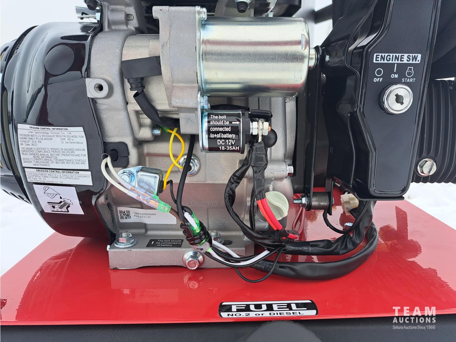 15 HP (420 cc) Lifan gas engine, 3.5 GPM at 4000 PSI pump with adjustable pressure, oil or diesel fired burner with thermostat, 10 gallon poly fuel tank, gun wand, high pressure hose