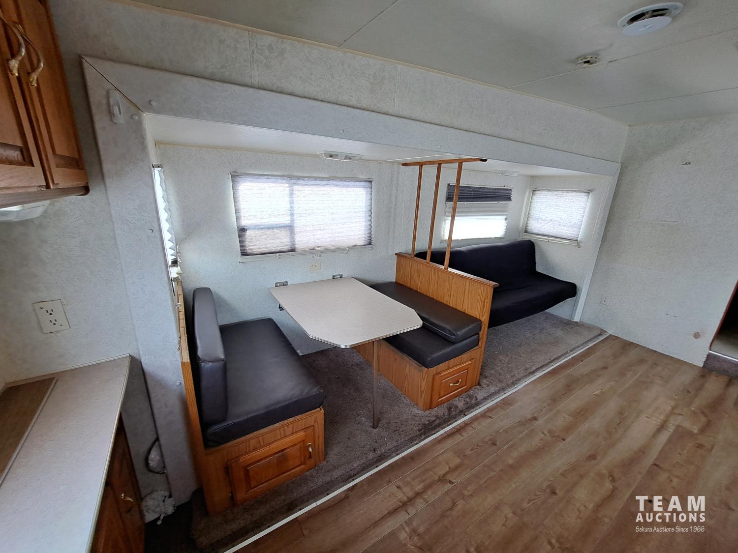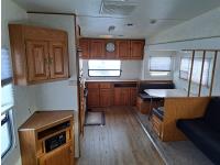 This trailer was re conditioned by the owner last summer, installed hardwood floor, new power awning, new batteries, new hot water tank, new tires, adjusted brakes and brake clips, new exterior vents, exhaust covers, new locks, new 30 lb propane tanks, serviced AC and furnace system, new shower, roof was re-sealed, water damage to kitchen was repaired, lots of storage cupboards