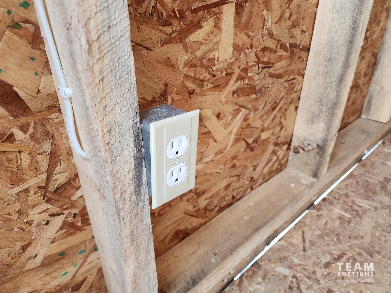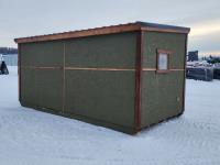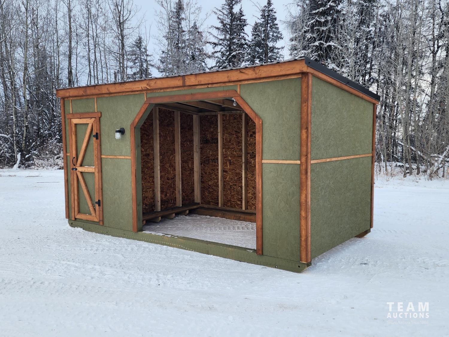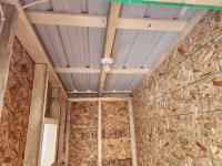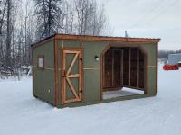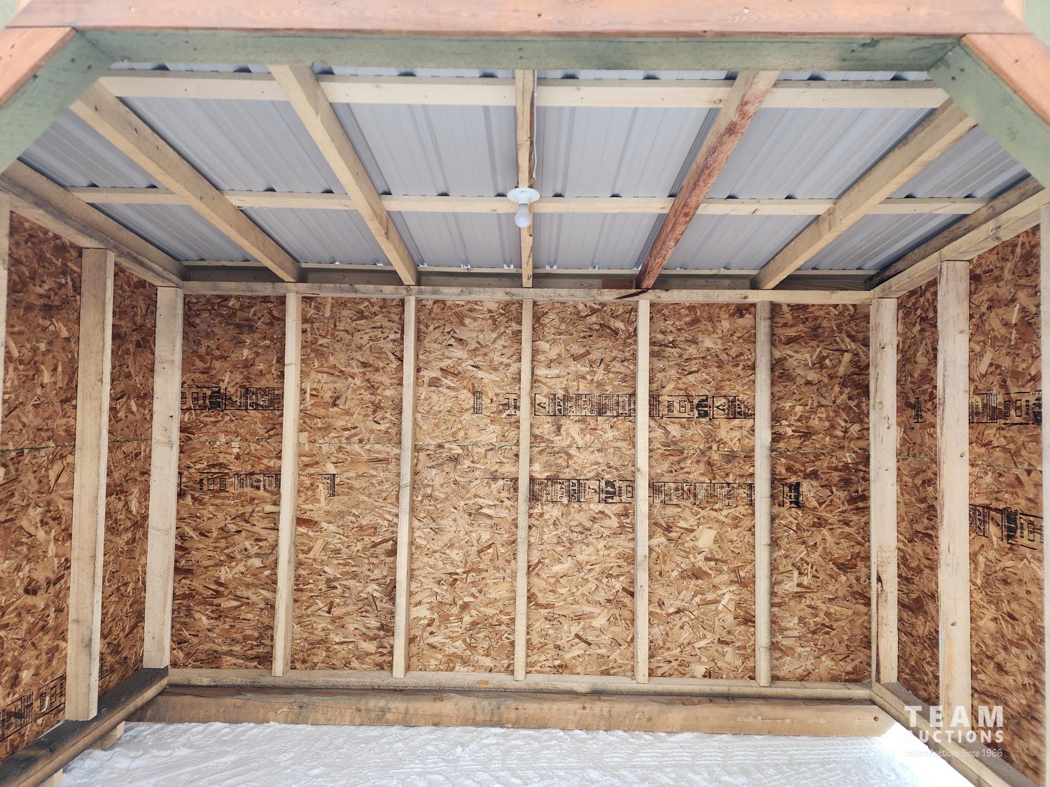 tack room with window, light and plug, wired, tin roof, 8.5 ft front height, 7.5 ft rear height