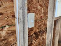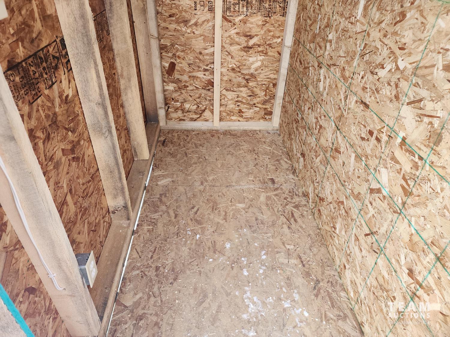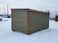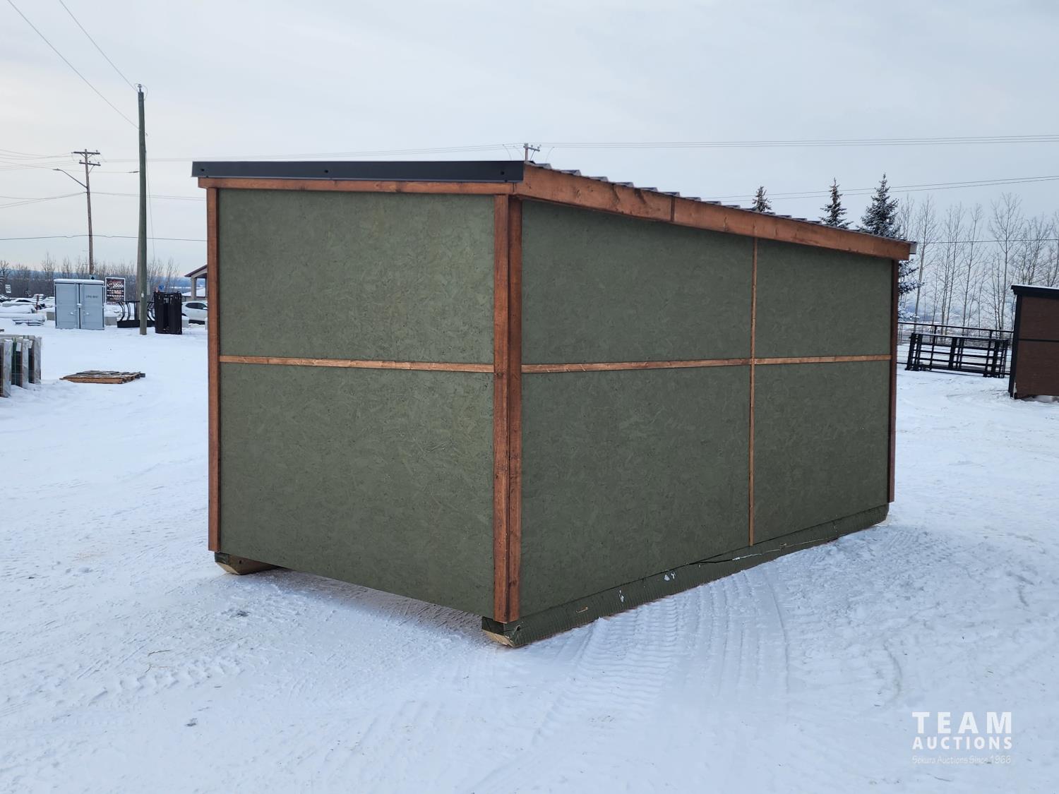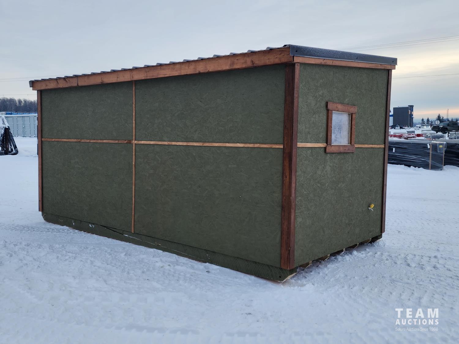 tack room with window, light and plug, wired, tin roof, 8.5 ft front height, 7.5 ft rear height