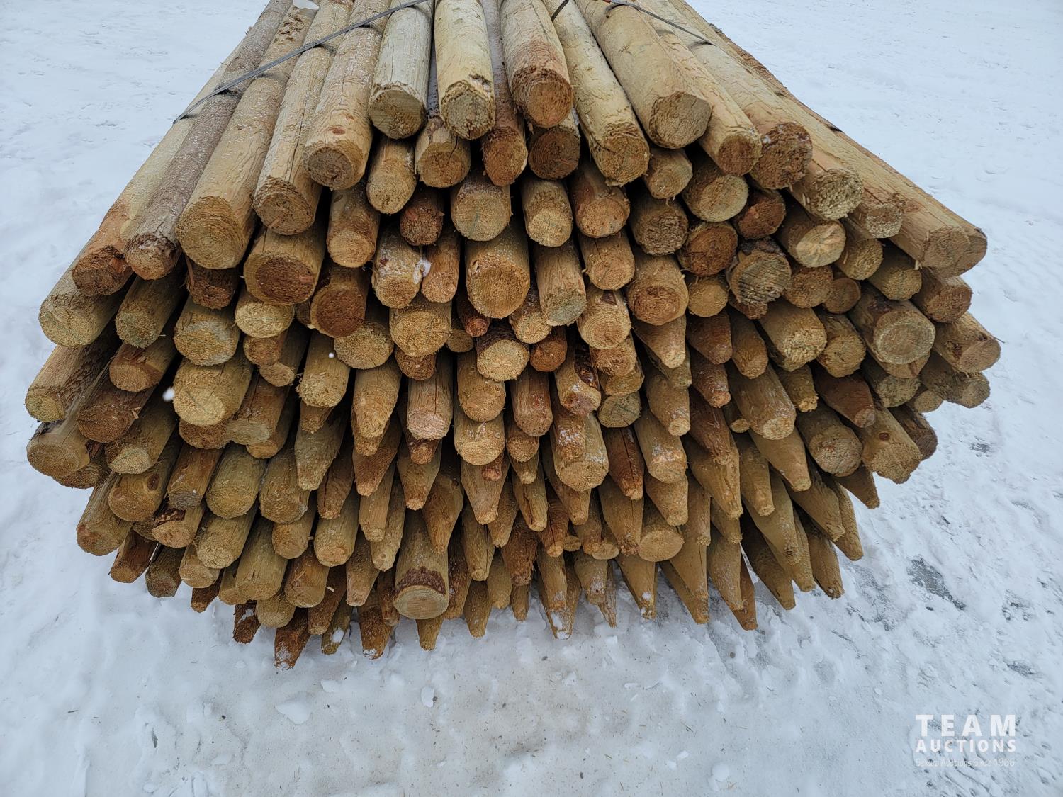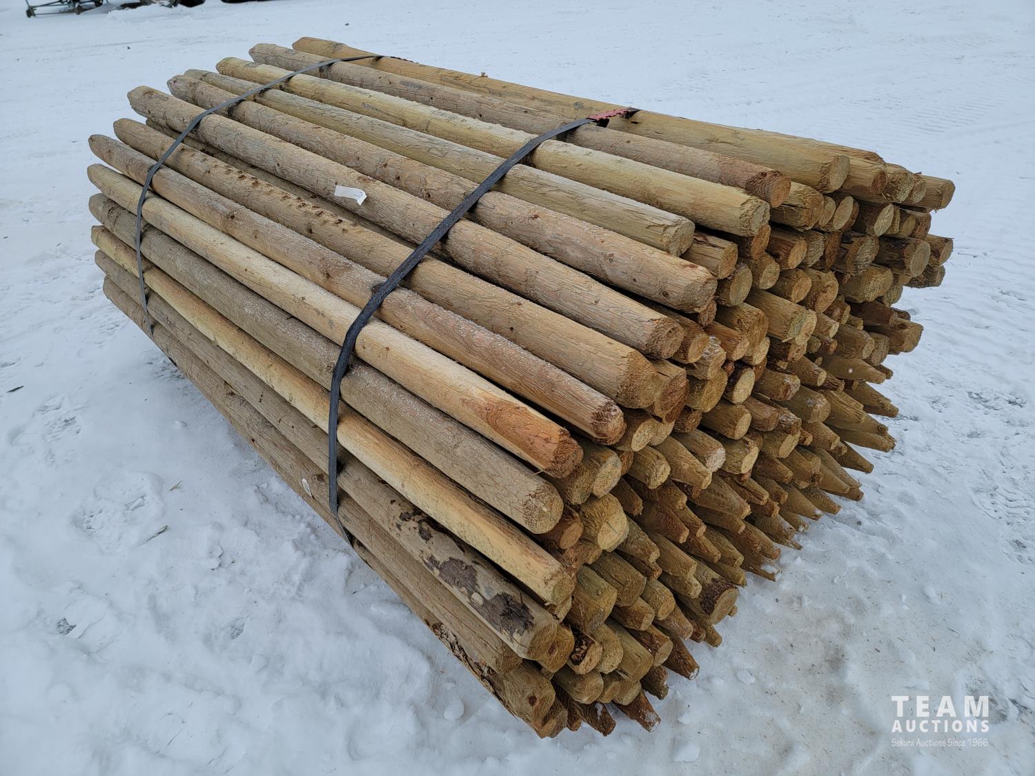 2192 (150) 2-3 Inch 8 Ft Pointed Treated Posts (Unused)