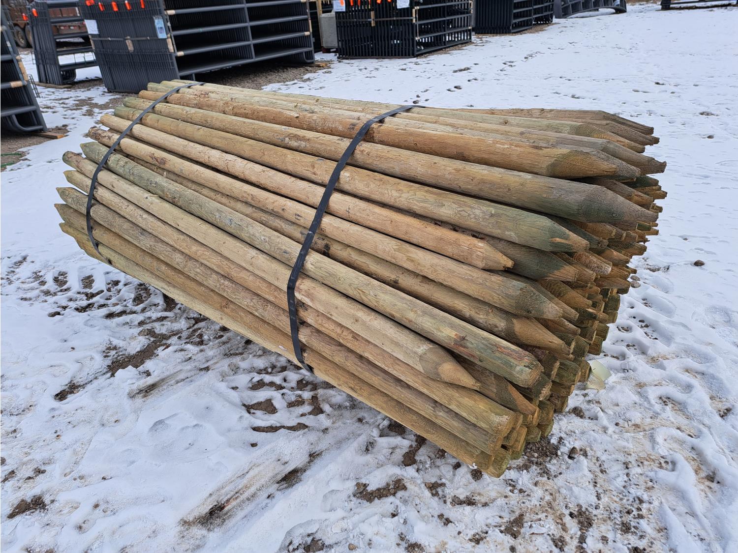 2399 (150) 2 Inch - 3 Inch X 8 Ft Treated Posts (Unused)