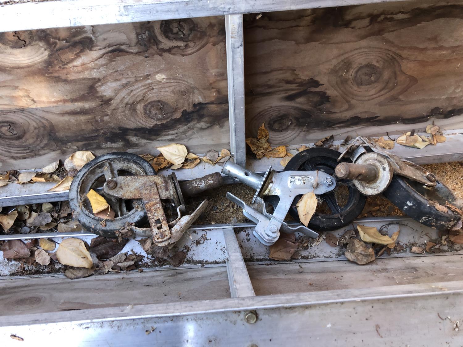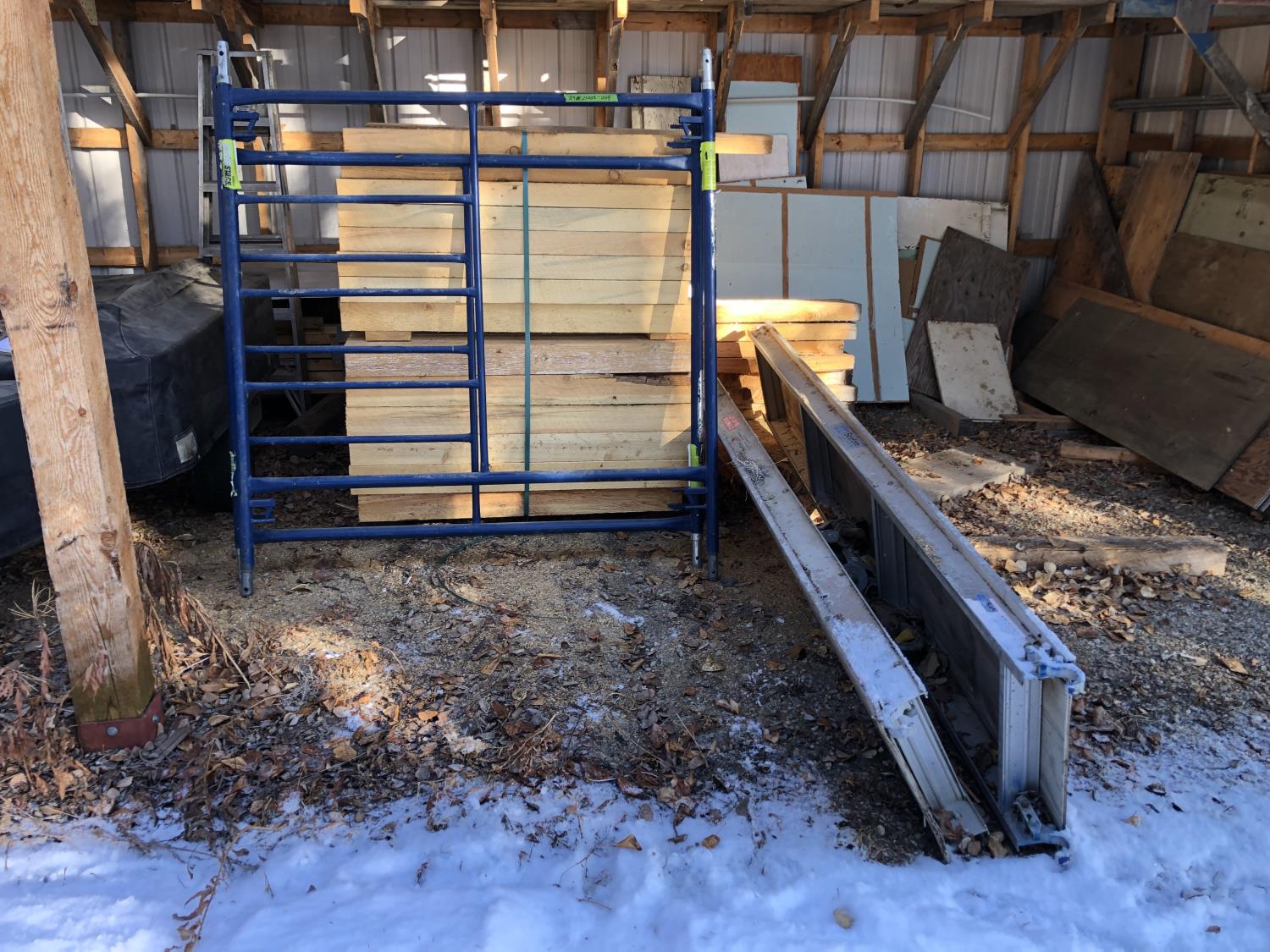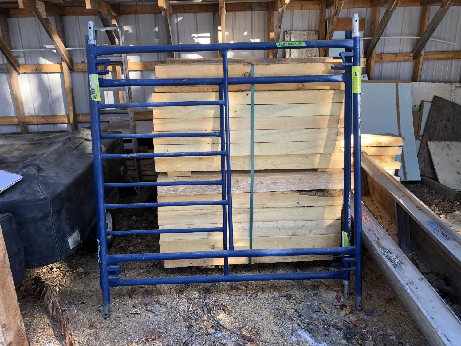 2342 (2) 64 Inch X 61 Inch Scaffolding Frame Pieces, 120 Inch X 19 Inch Walkway and 8 Inch Castors