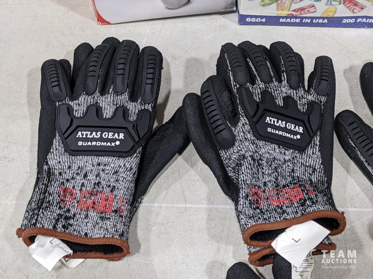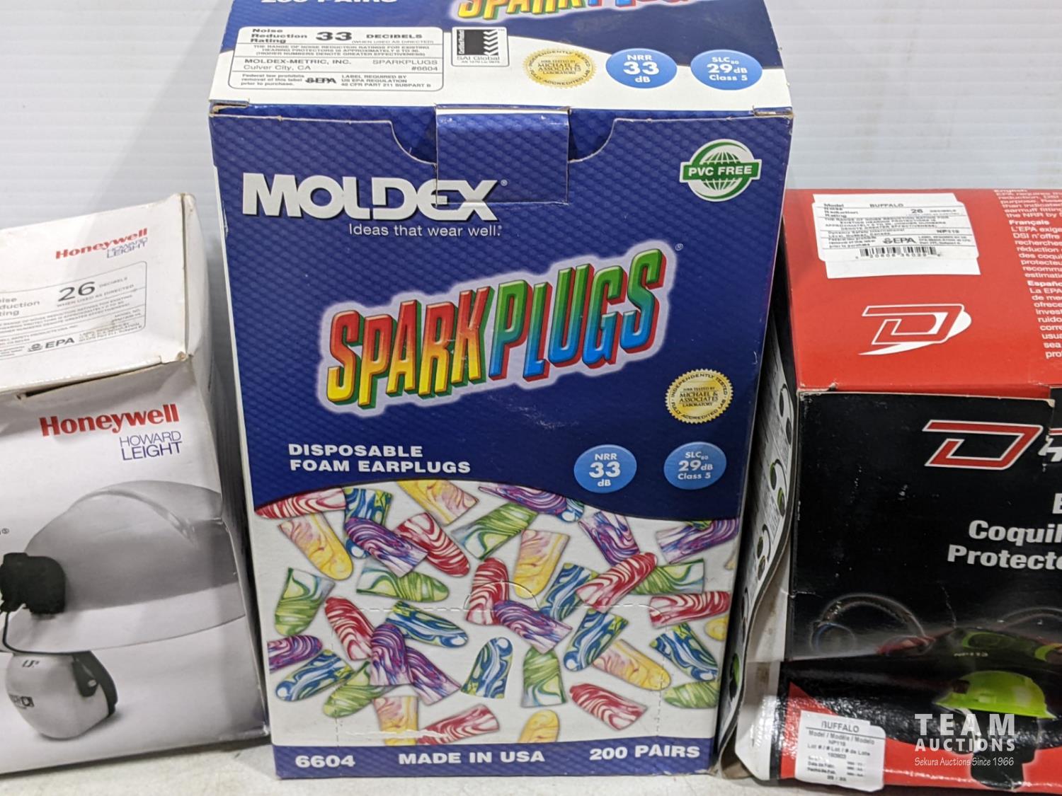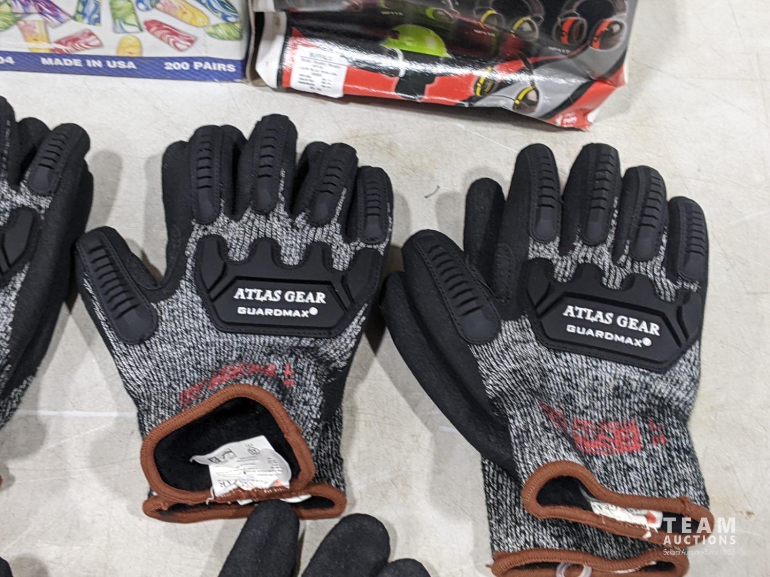 1907 (2) Pairs of Earmuffs, Moldex Spark Plug Earplugs and (5) Pairs Atlas Gear Gloves Size Large (Unused)