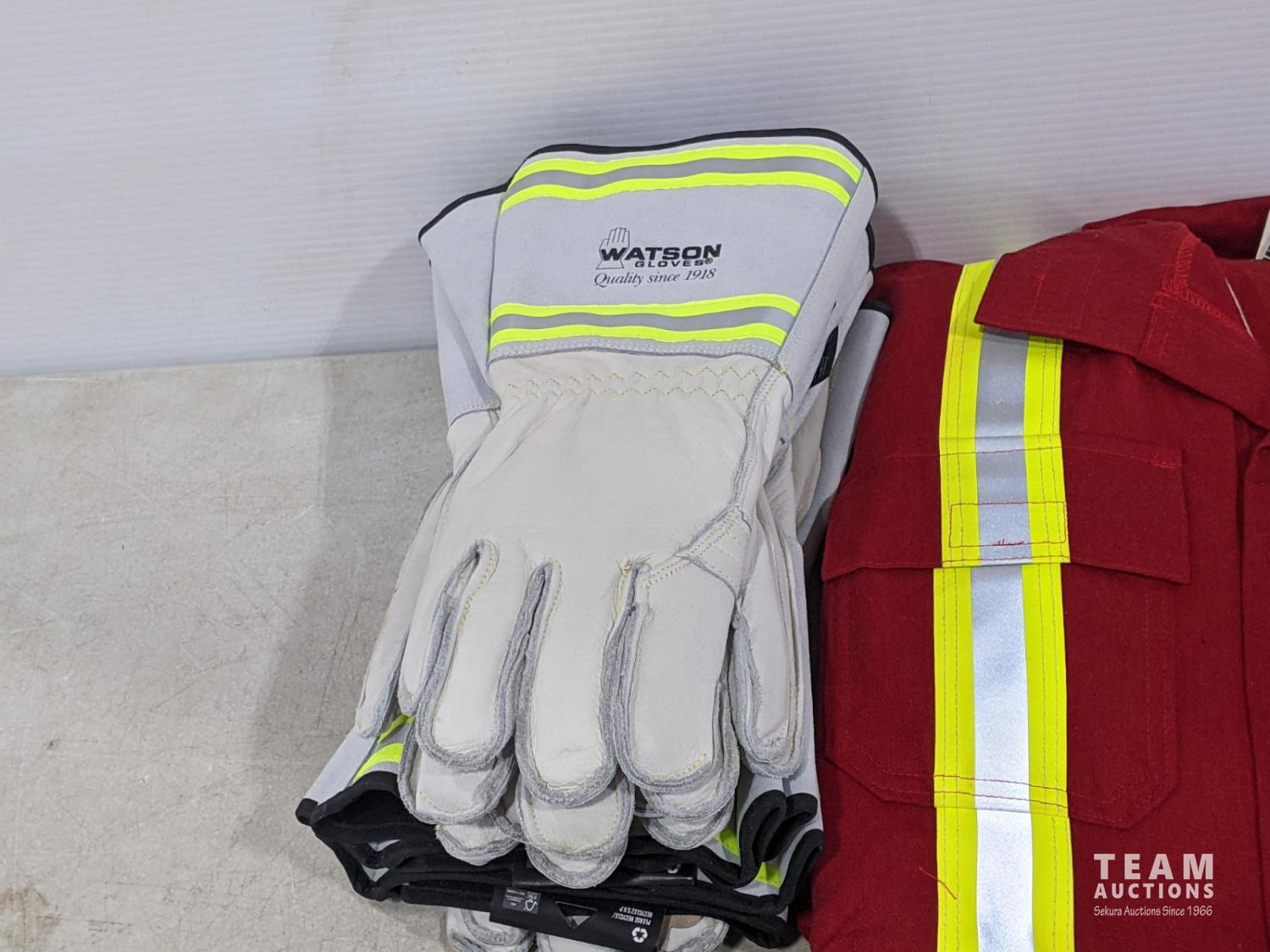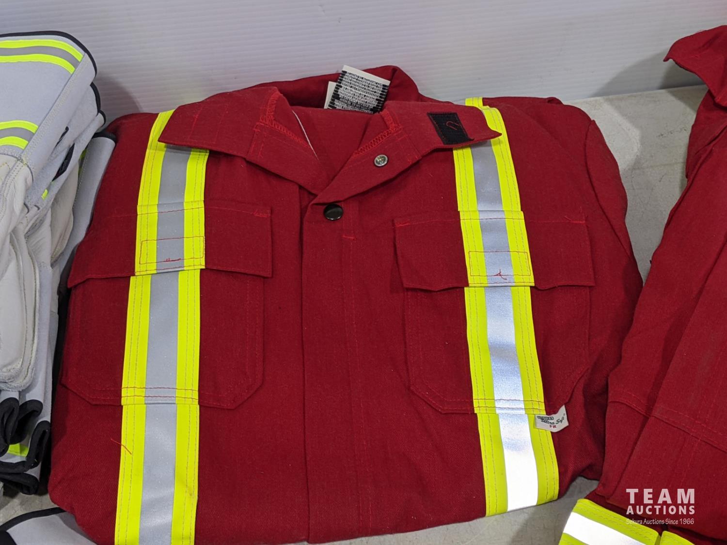 2011 (2) Size 40T FR Red Coveralls with Reflective Striping and (6) Pairs of Gloves (Unused)