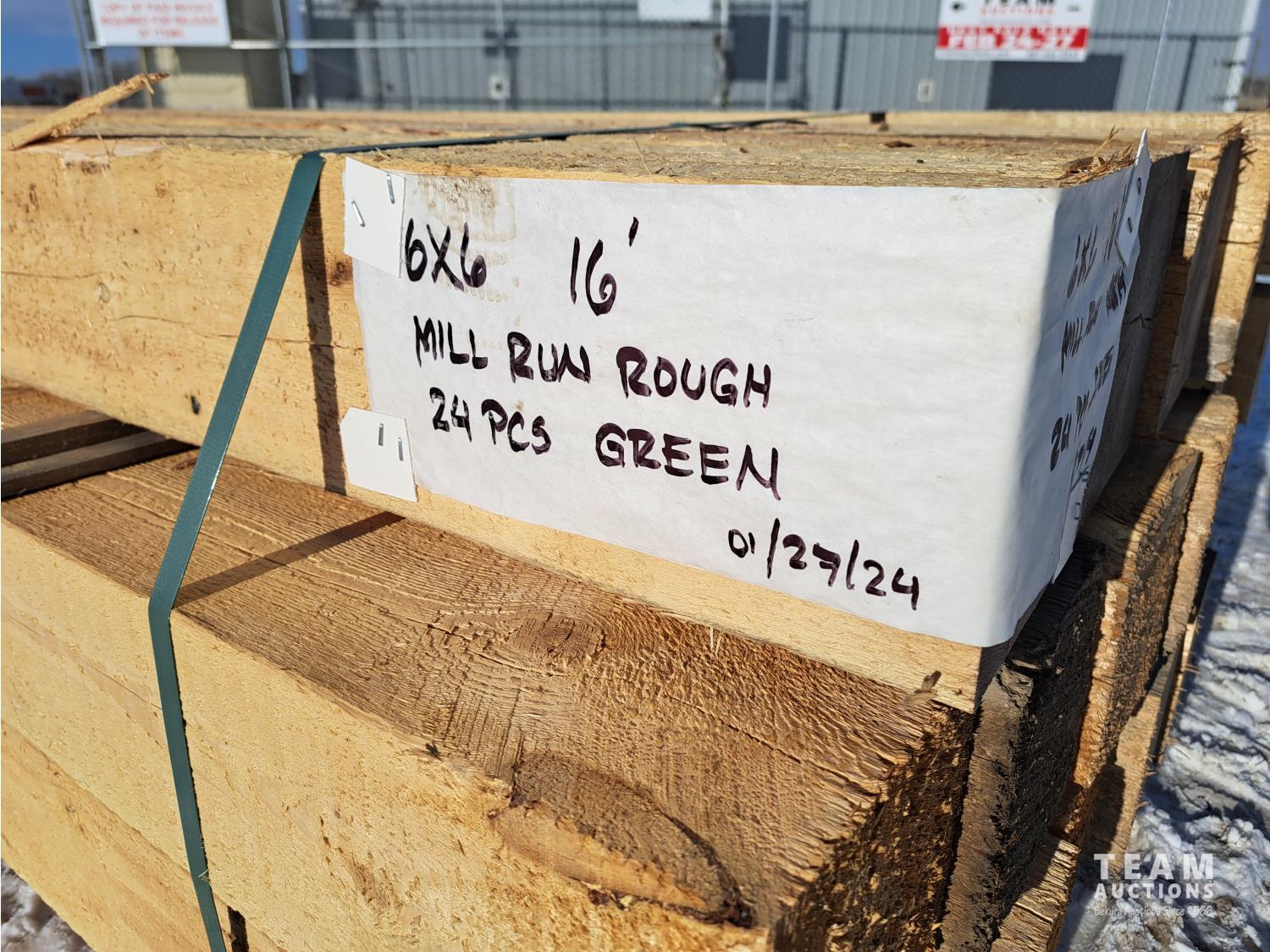 2539 (24) 6 Inch X 6 Inch X 16 Ft Mill Run Rough Green Timbers (Unused)