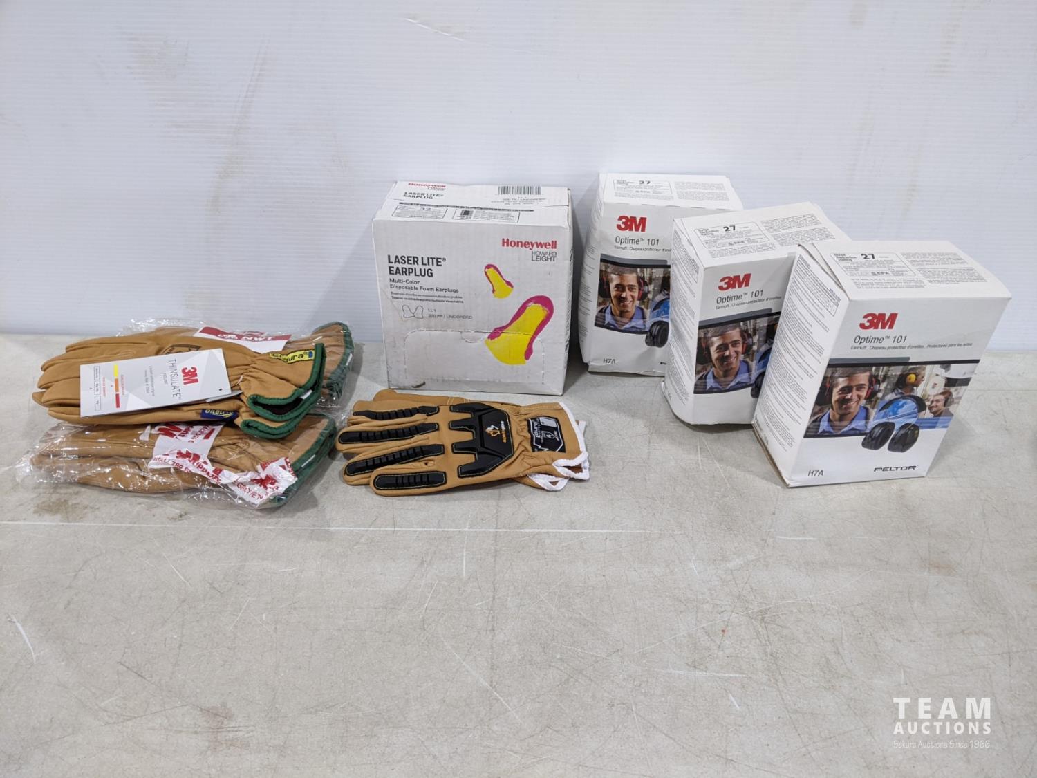 1903 (3) Endura XL Winter Gloves, (1) Endura Large Work Gloves, (3) 3M Earmuffs and Earplugs (Unused)