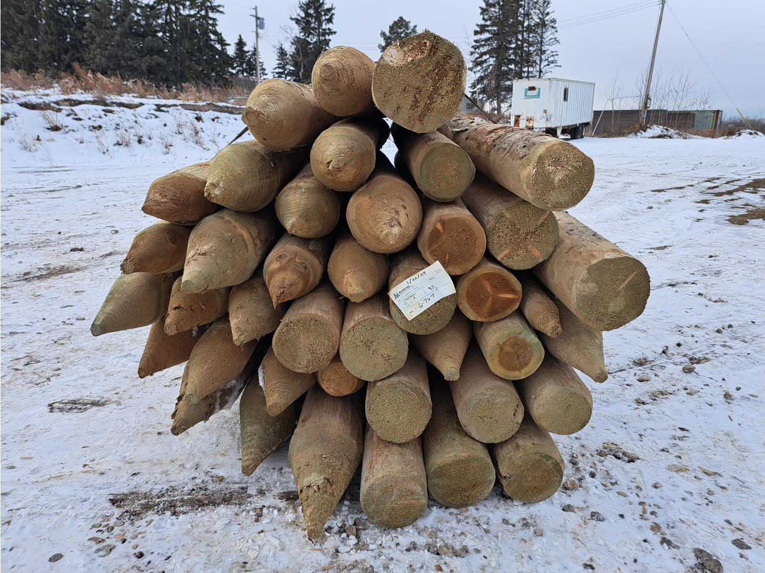 2385 (35) 6 Inch - 7 Inch X 7 Ft Treated Posts (Unused)
