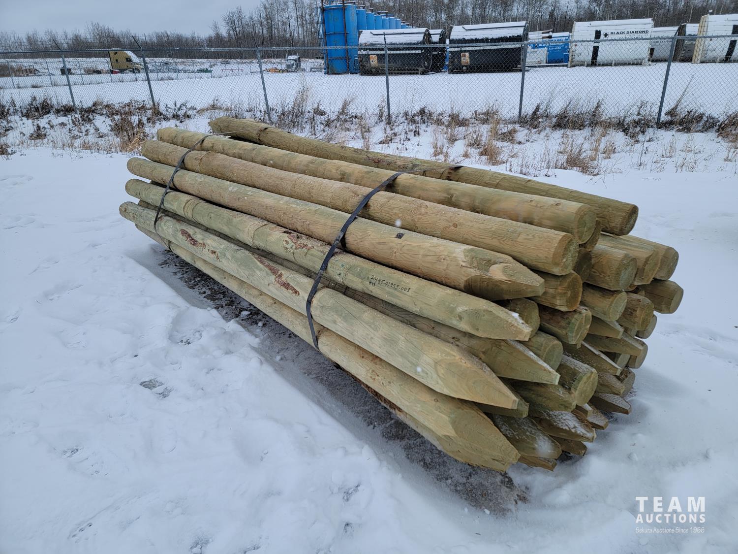 2176 (45) 5-6 Inch 12 Ft Pointed Treated Posts (Unused)