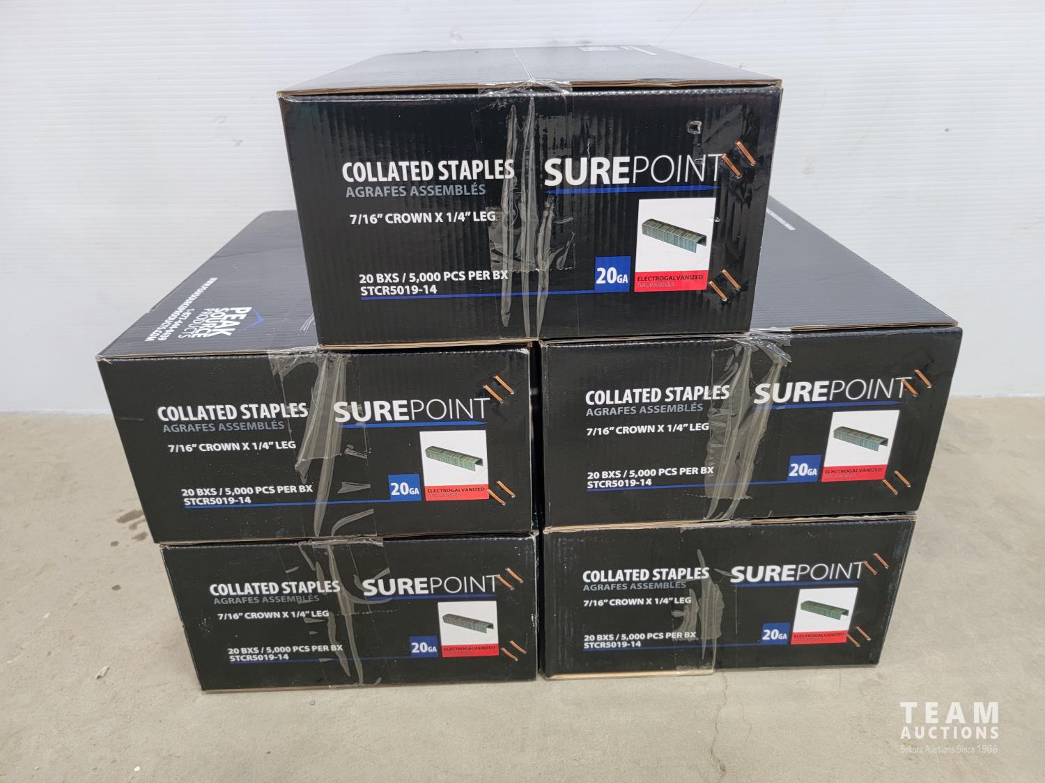 1423 (5) Cases of Surepoint 7/16 Inch Crown X 1/4 Inch Leg Collated Staples (Unused)