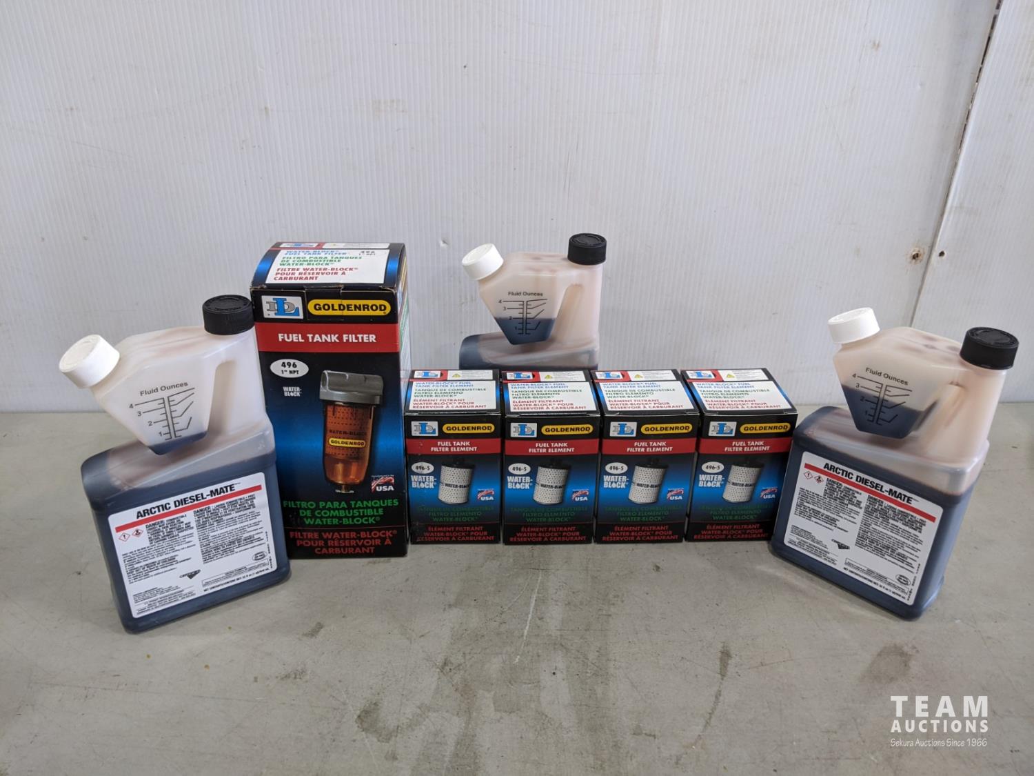 1040 (5) Golden Rod Fuel Filters and (3) Arctic Diesel-Mate (Unused)