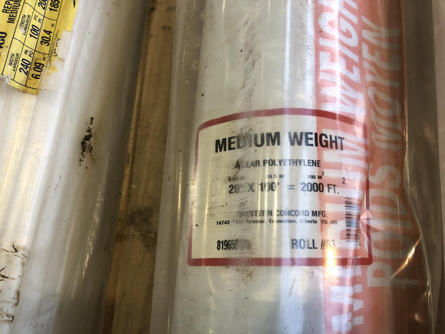 1449 (5) Rolls of 20 Ft X 100 Ft Medium Weight Clear Poly (Unused)