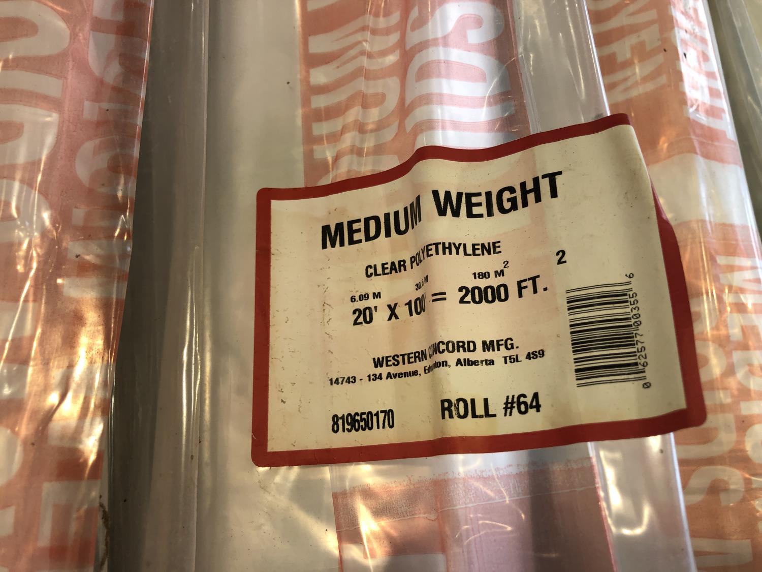 1448 (5) Rolls of 20 Ft X 100 Ft Medium Weight Clear Poly (Unused)