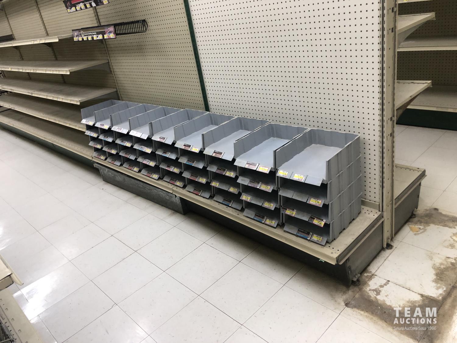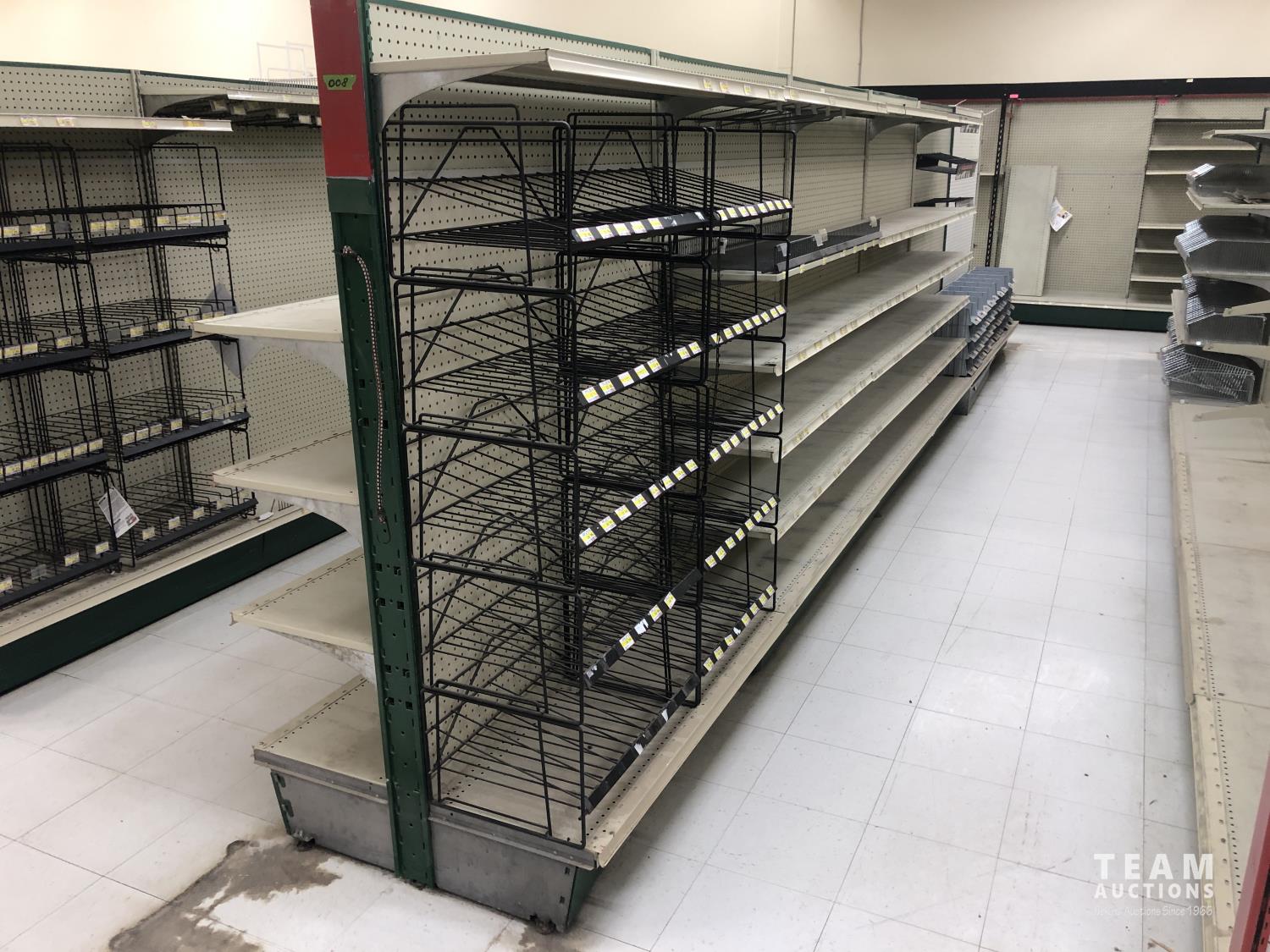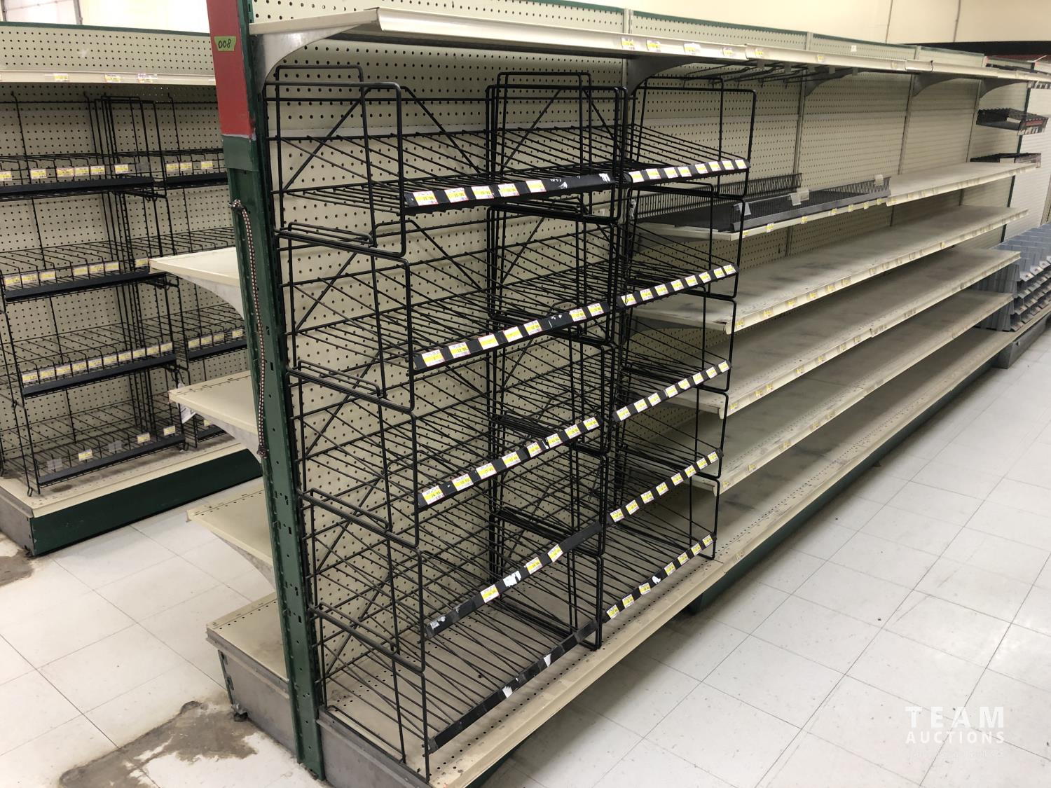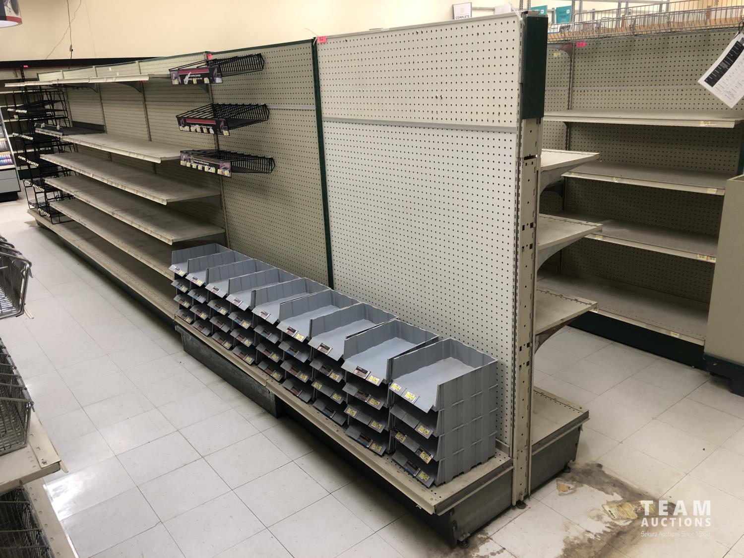 2296 Double Sided Display Shelf with Metal Racking and Pegboard End Cap
