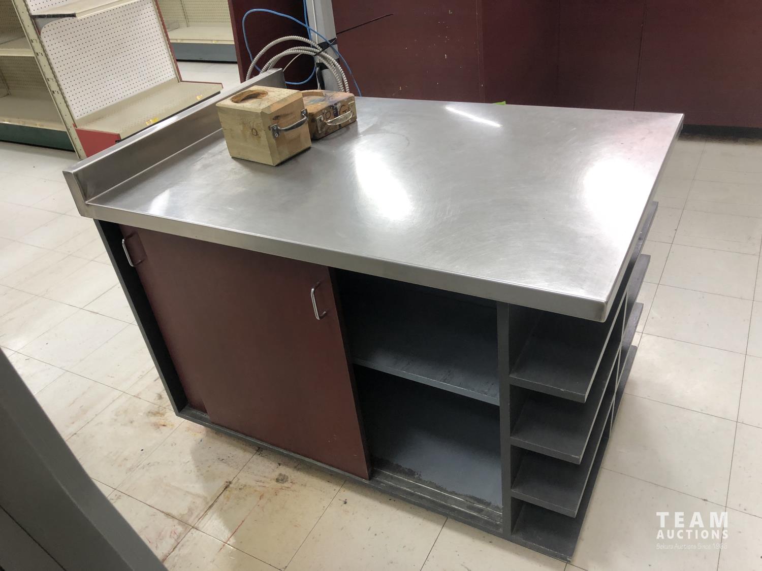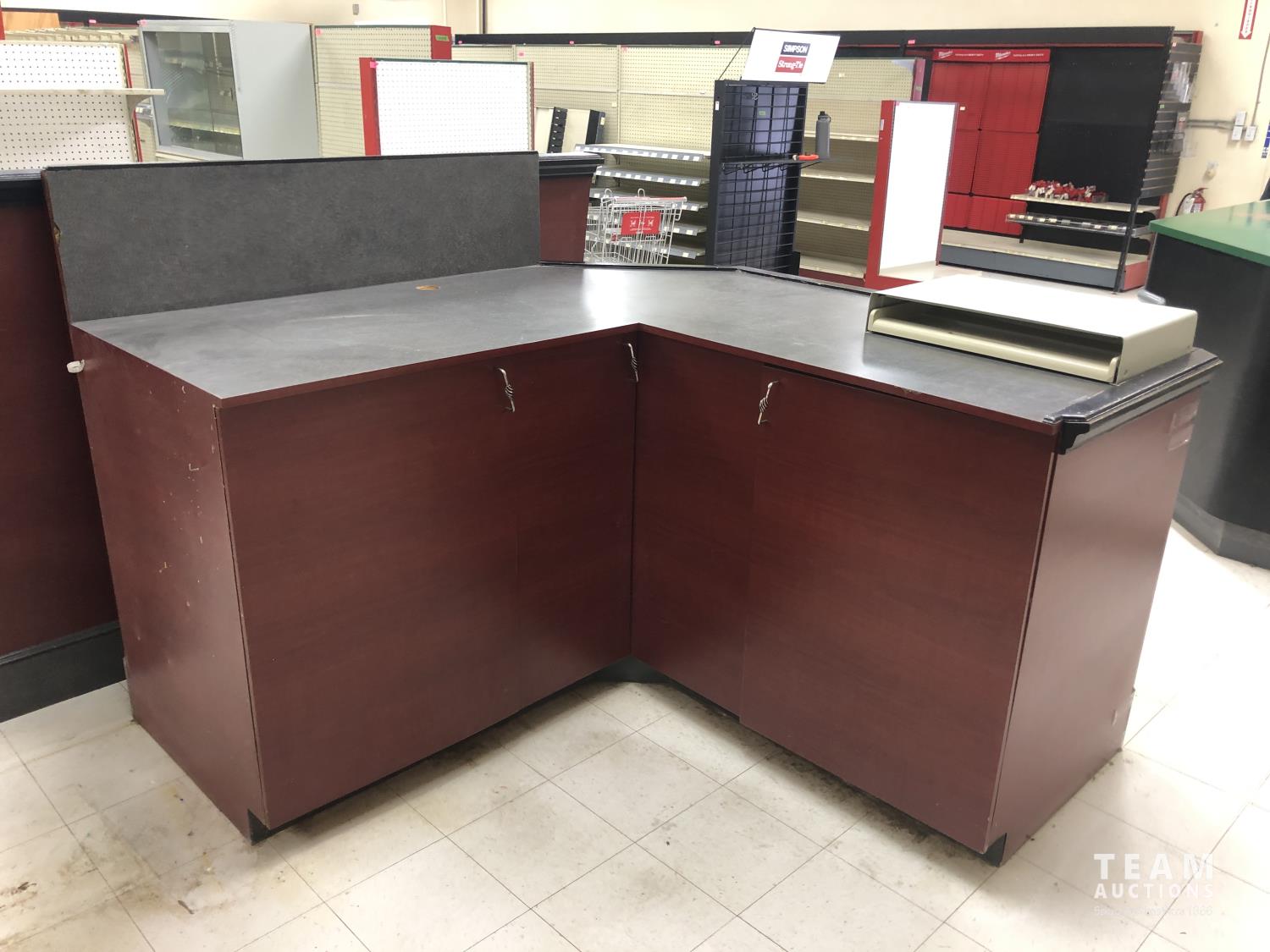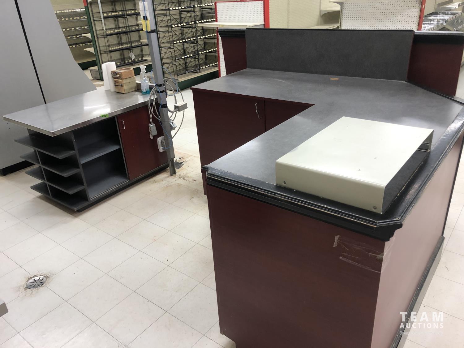 2308 6 Ft X 6 Ft X 3.5 Ft Sales Counter and Metal Counter 2.5 Ft X 4 Ft