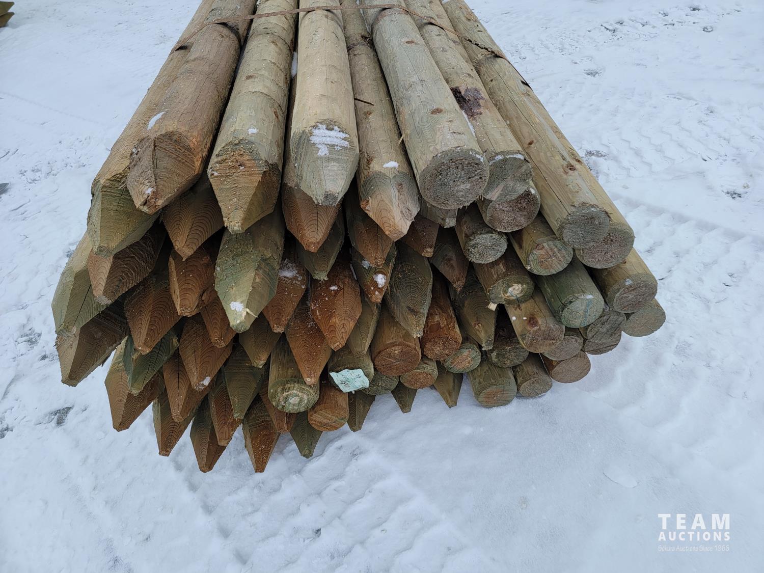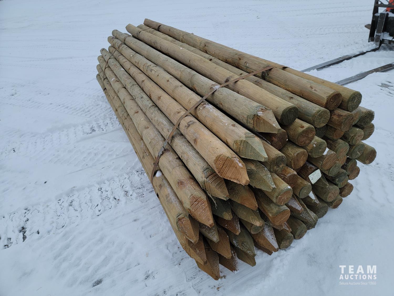 2179 (65) 4-5 Inch 12 Ft Pointed Treated Posts (Unused)