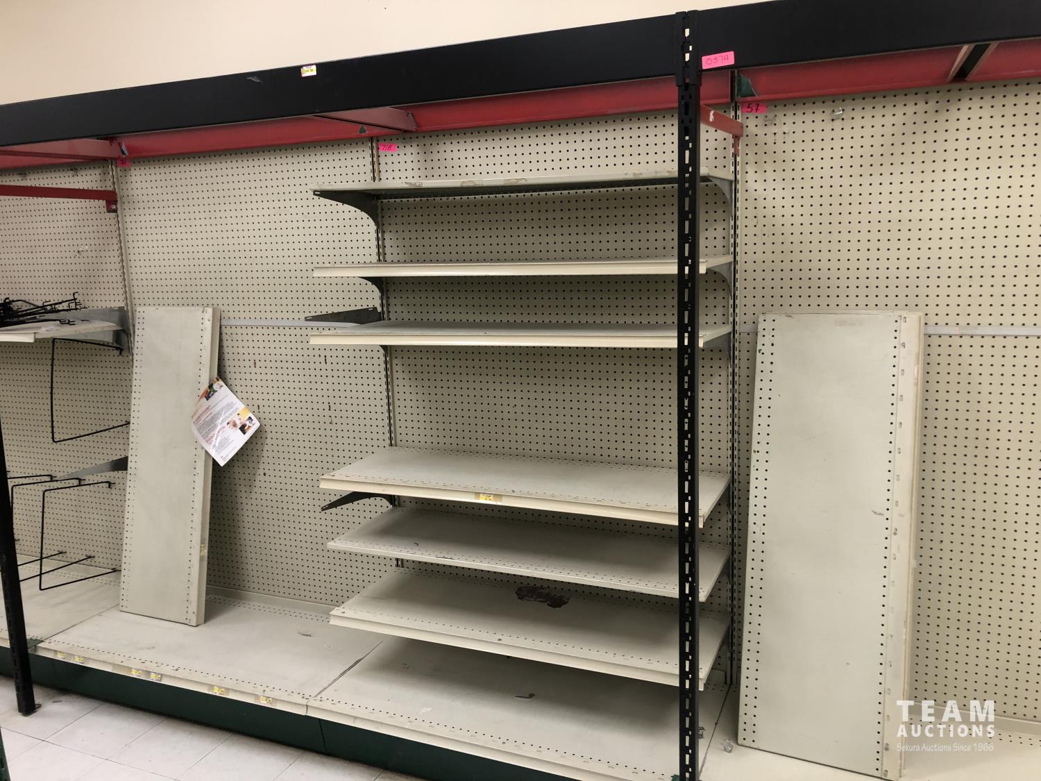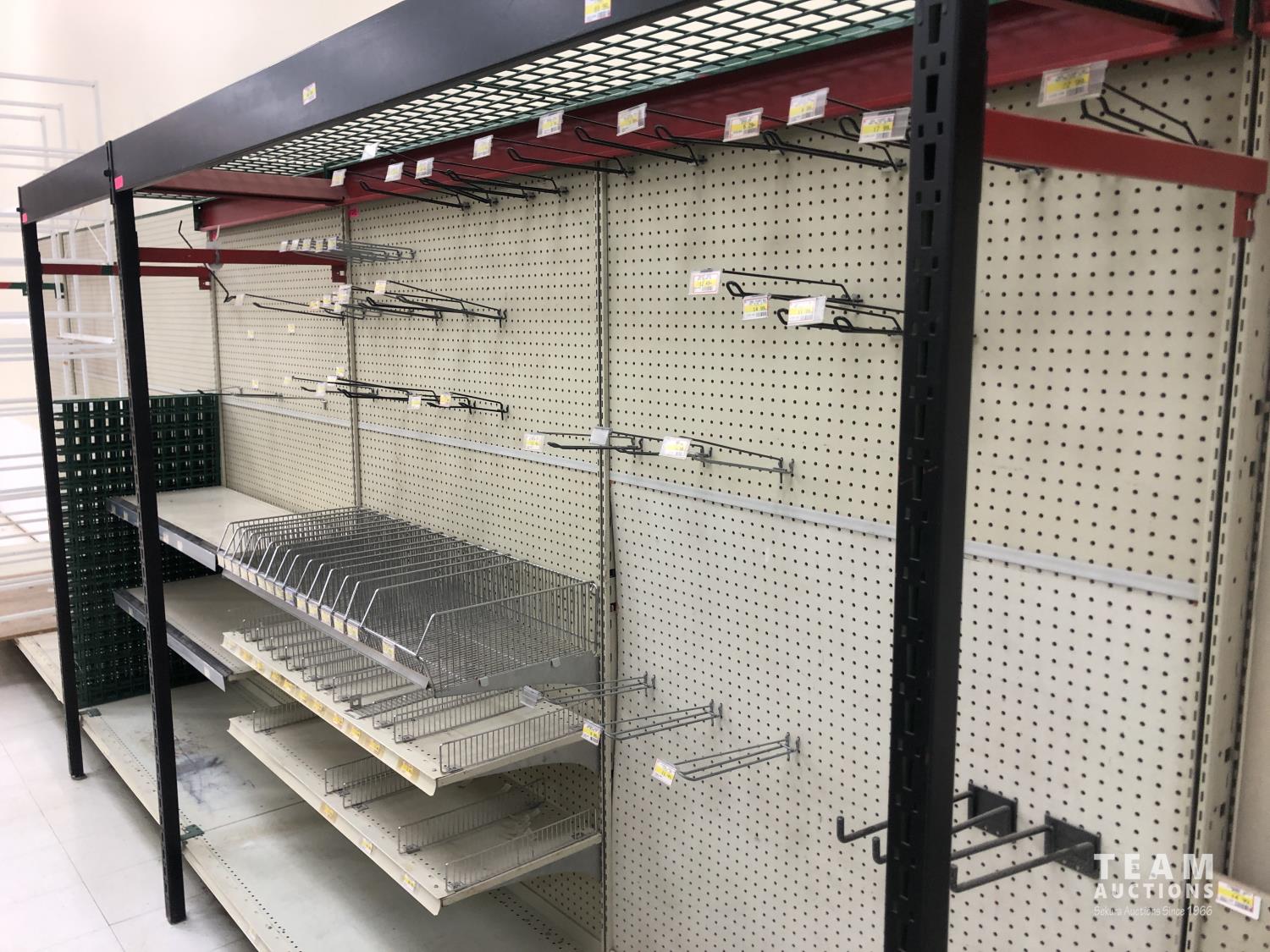 2296 Double Sided Display Shelf with Metal Racking and Pegboard End Cap