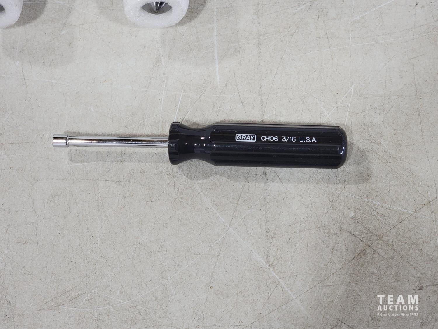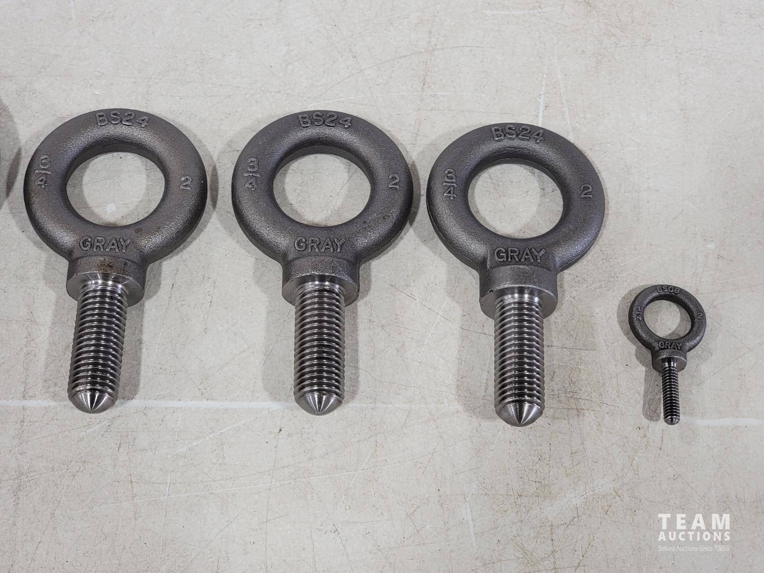 1989 (7) Gray Tools Shoulder Eye Bolts and 3/16 Inch Nut Driver (Unused)
