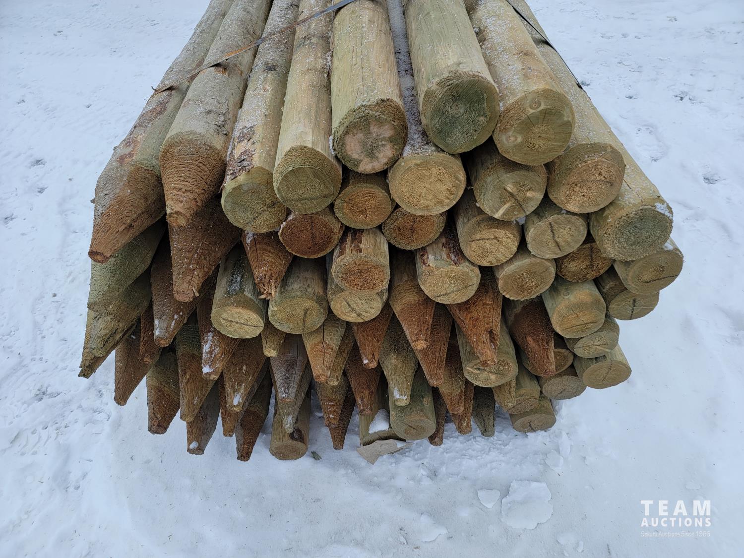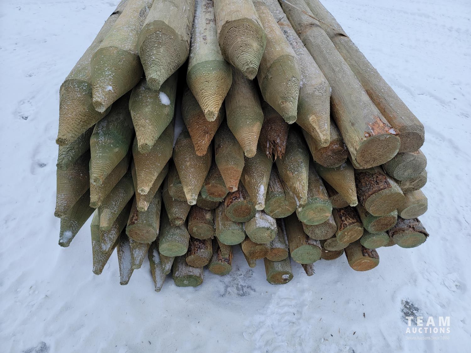 2180 (70) 4-5 Inch 8 Ft Pointed Treated Fence Posts (Unused)