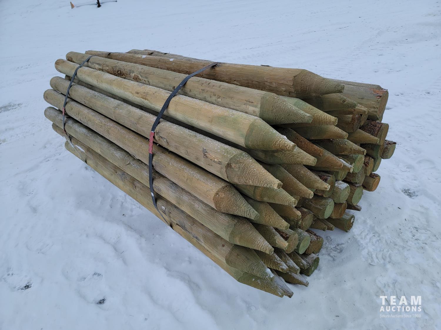 2183 (70) 4-5 Inch 8 Ft Pointed Treated Fence Posts (Unused)
