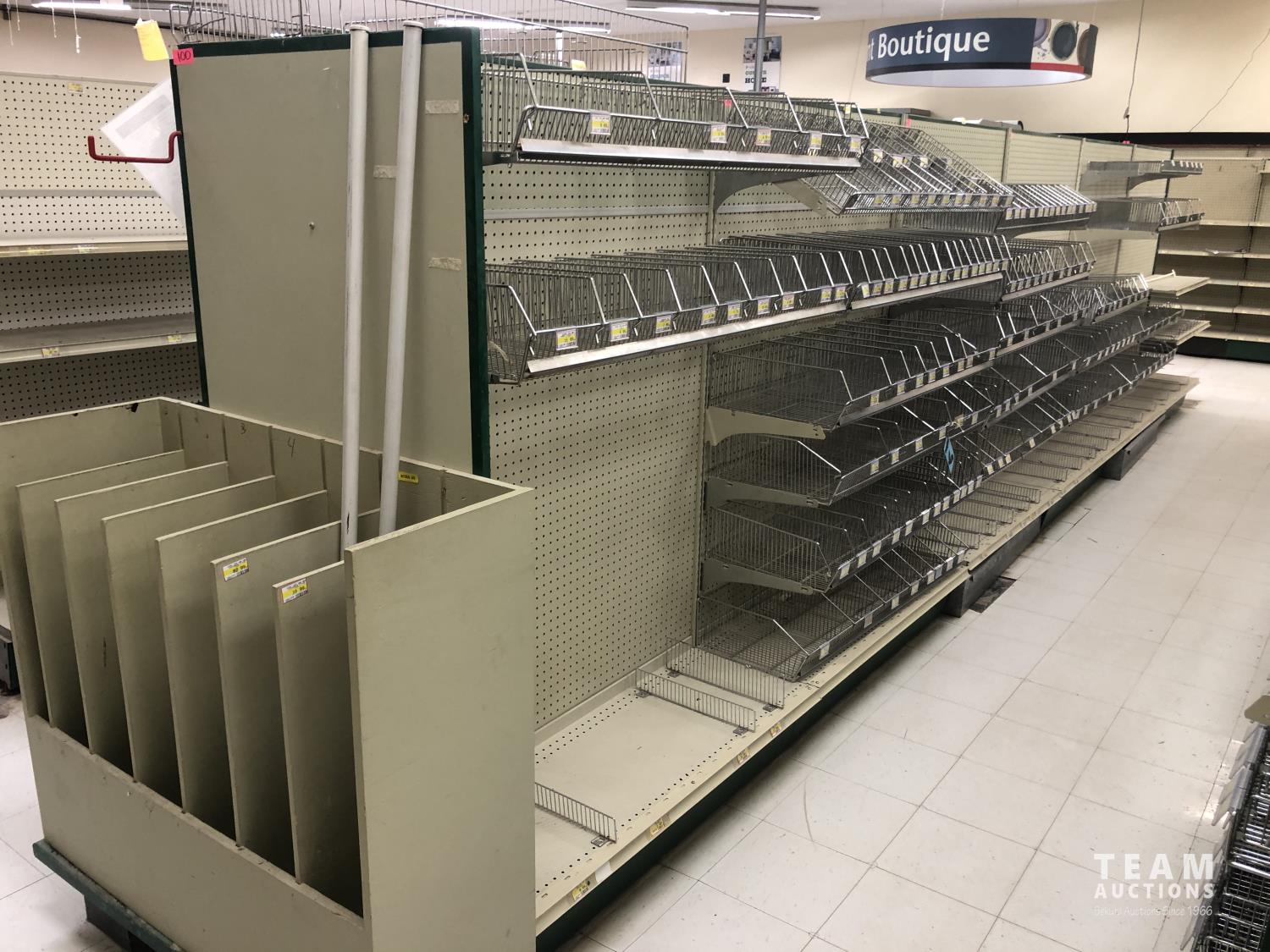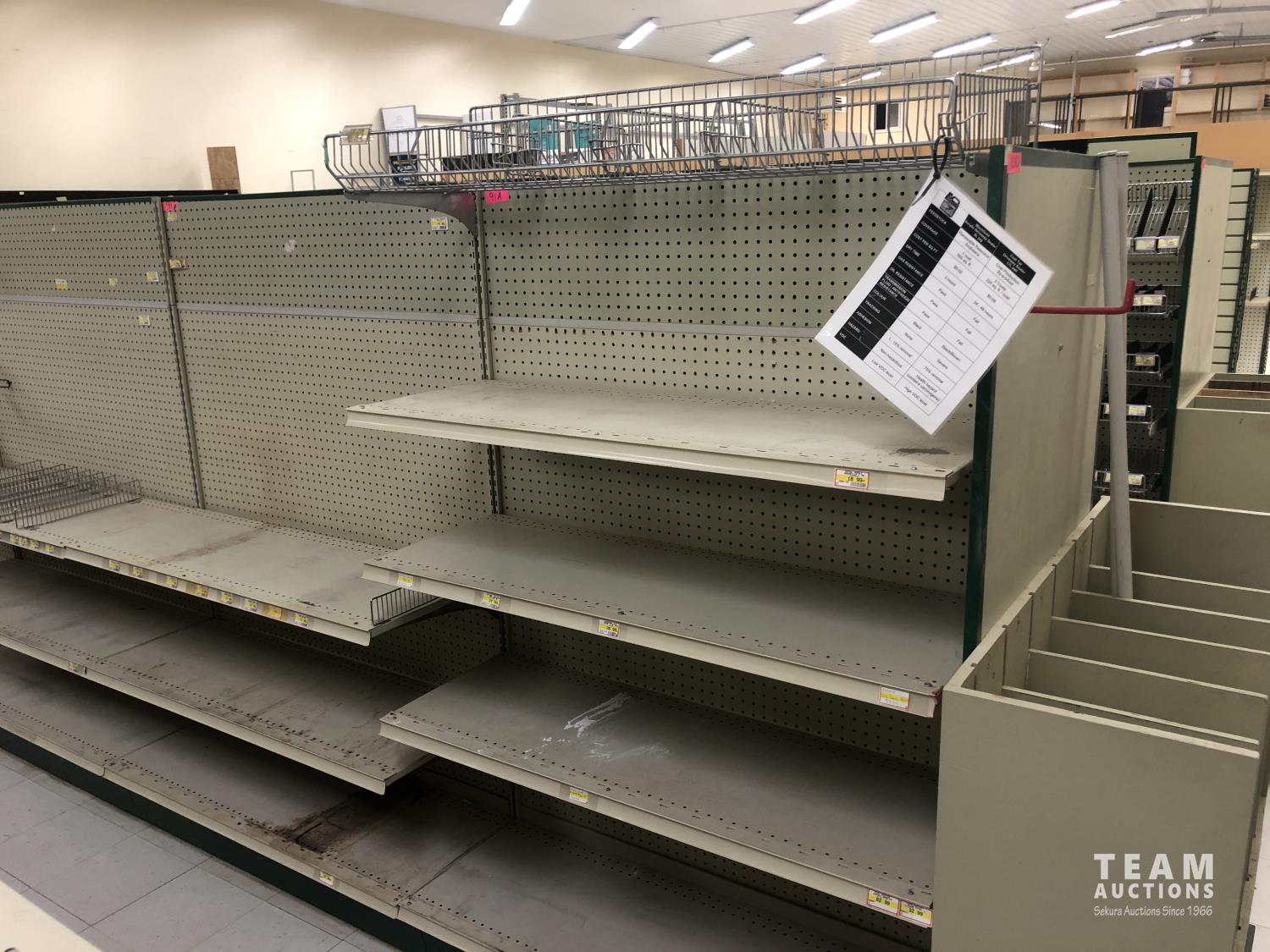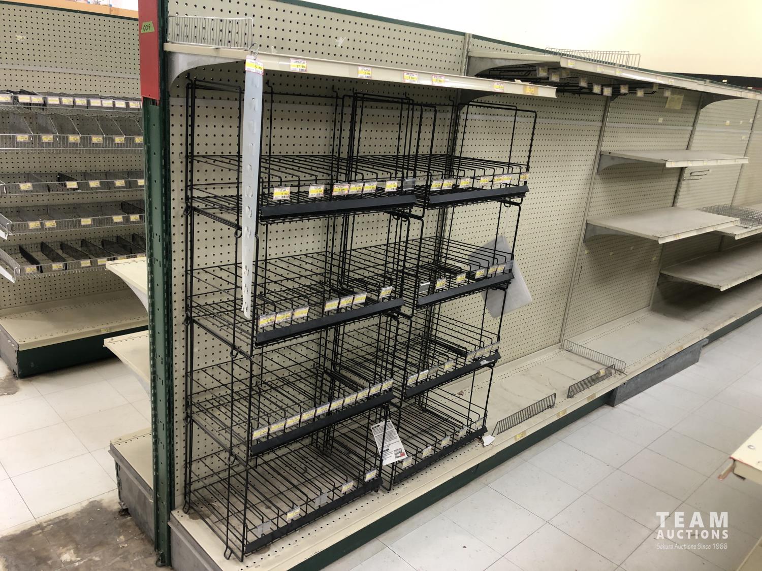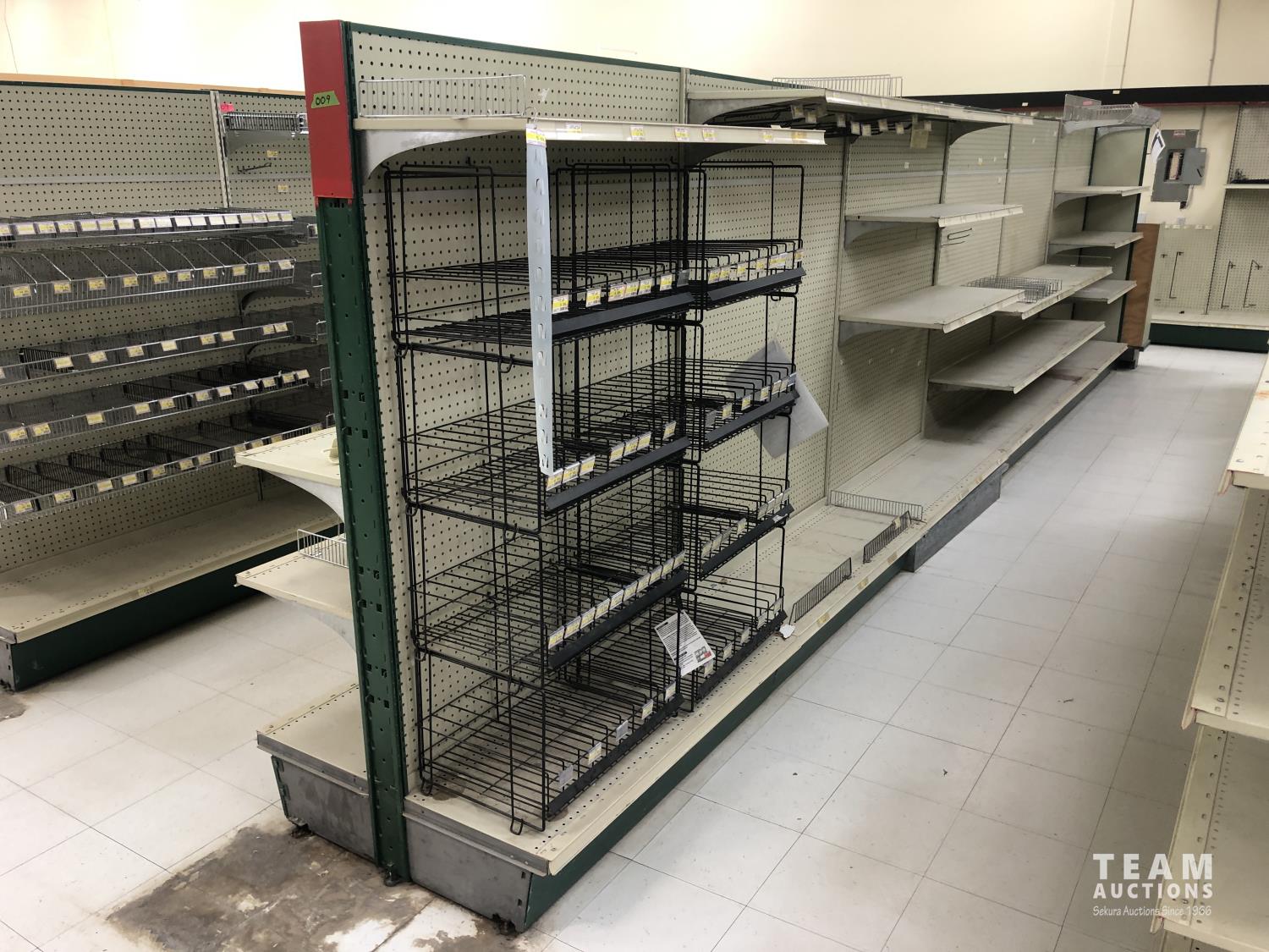 2296 Double Sided Display Shelf with Metal Racking and Pegboard End Cap