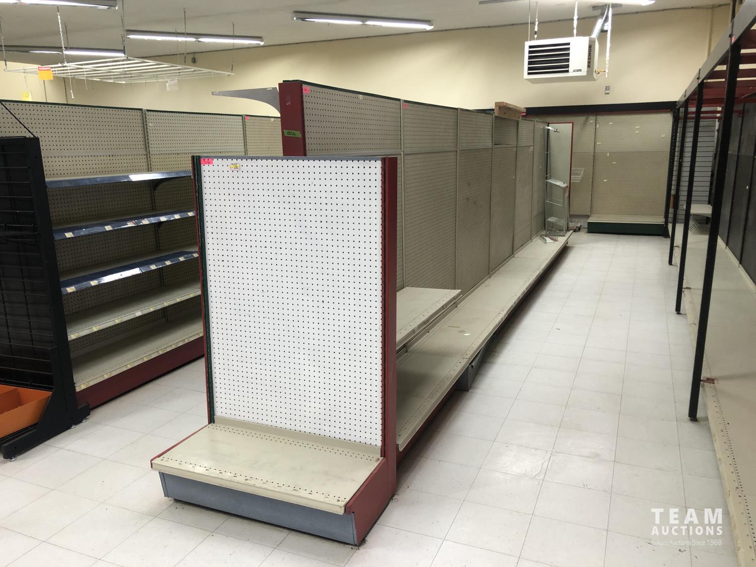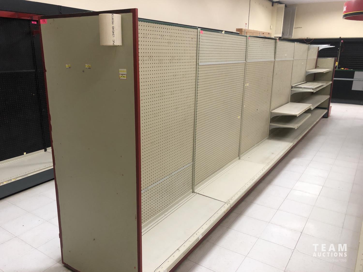 2296 Double Sided Display Shelf with Metal Racking and Pegboard End Cap