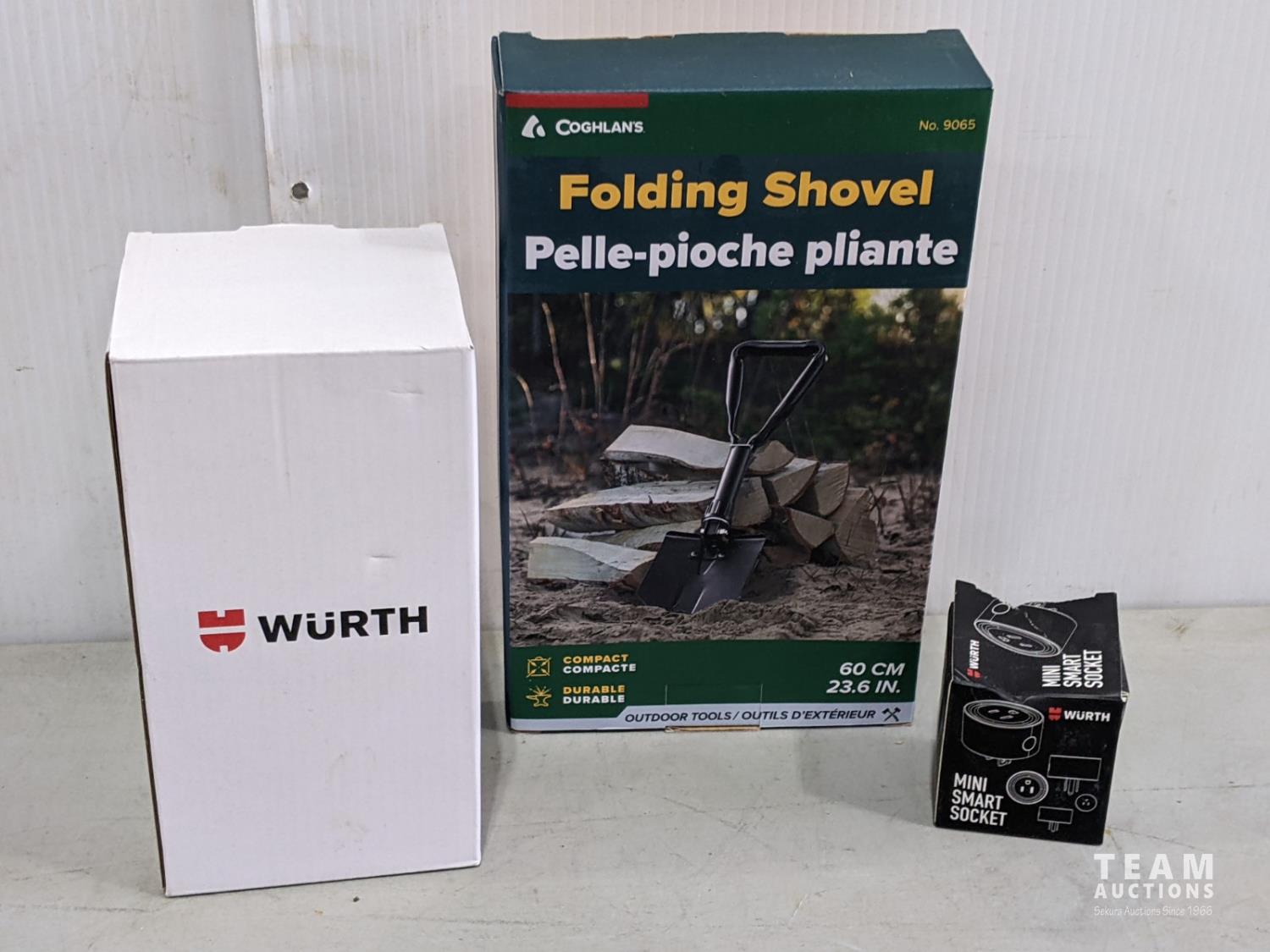 1931 Folding Shovel, Wurth Lantern and Wurth Smart Socket (Unused)