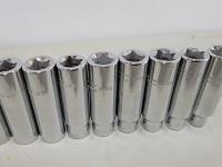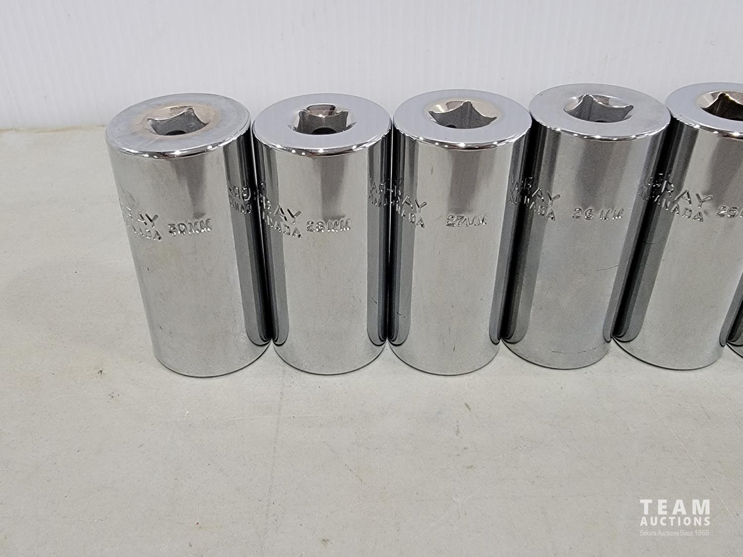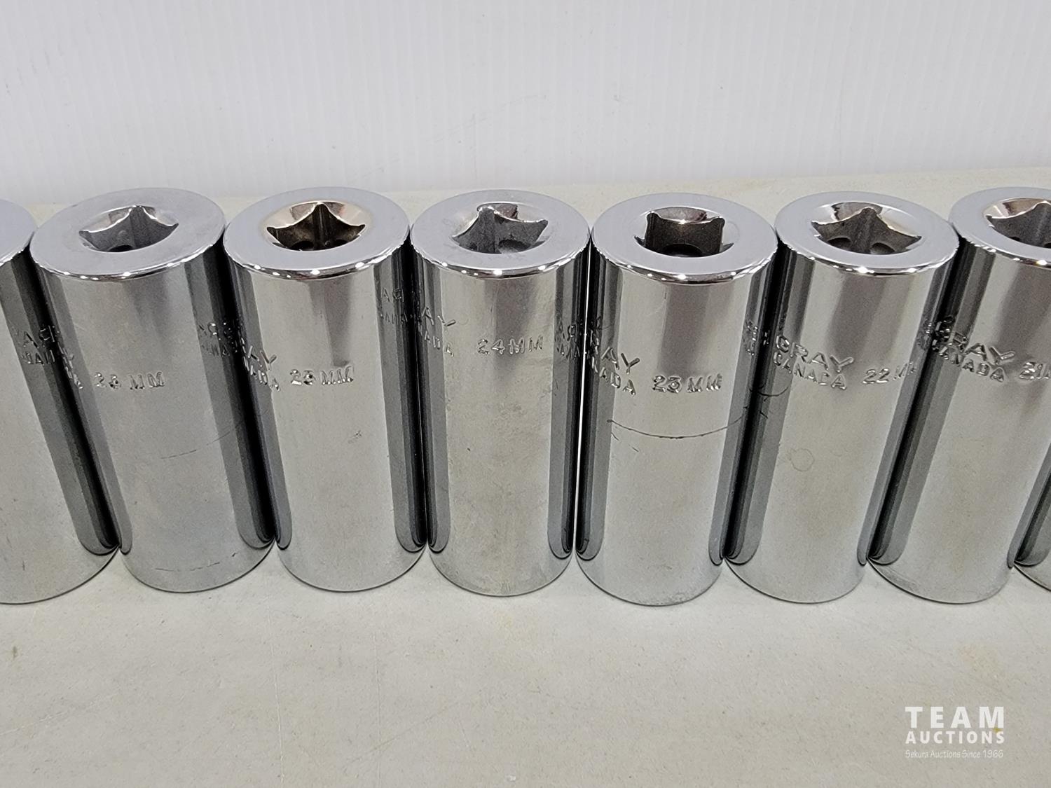 1948 Gray Tools 18 Piece 1/2 Inch Drive 6 PT Metric Deep Sockets (Unused)