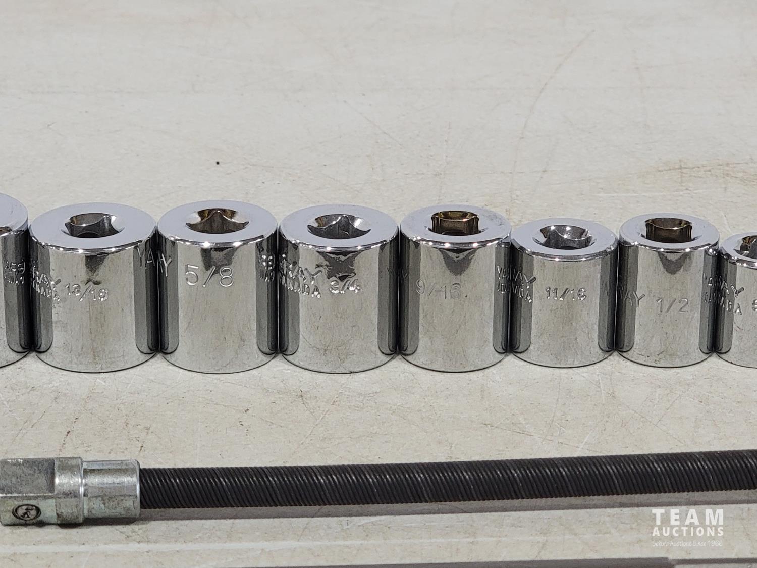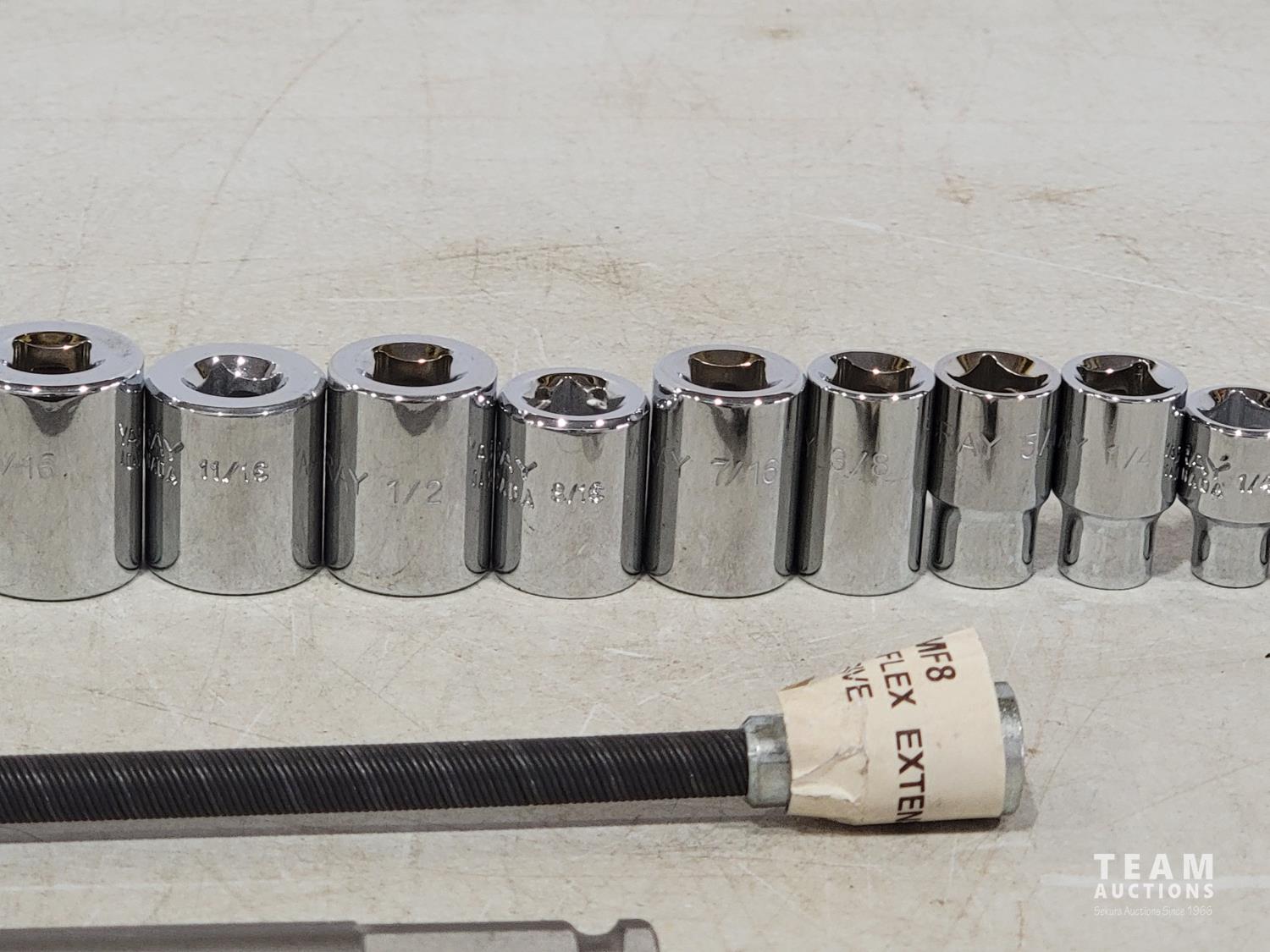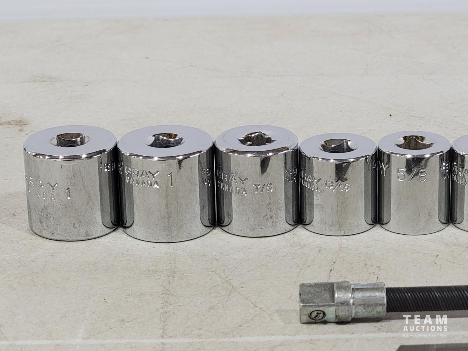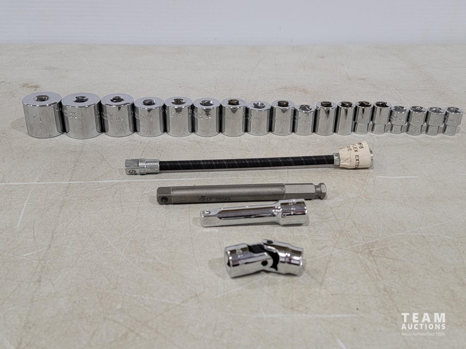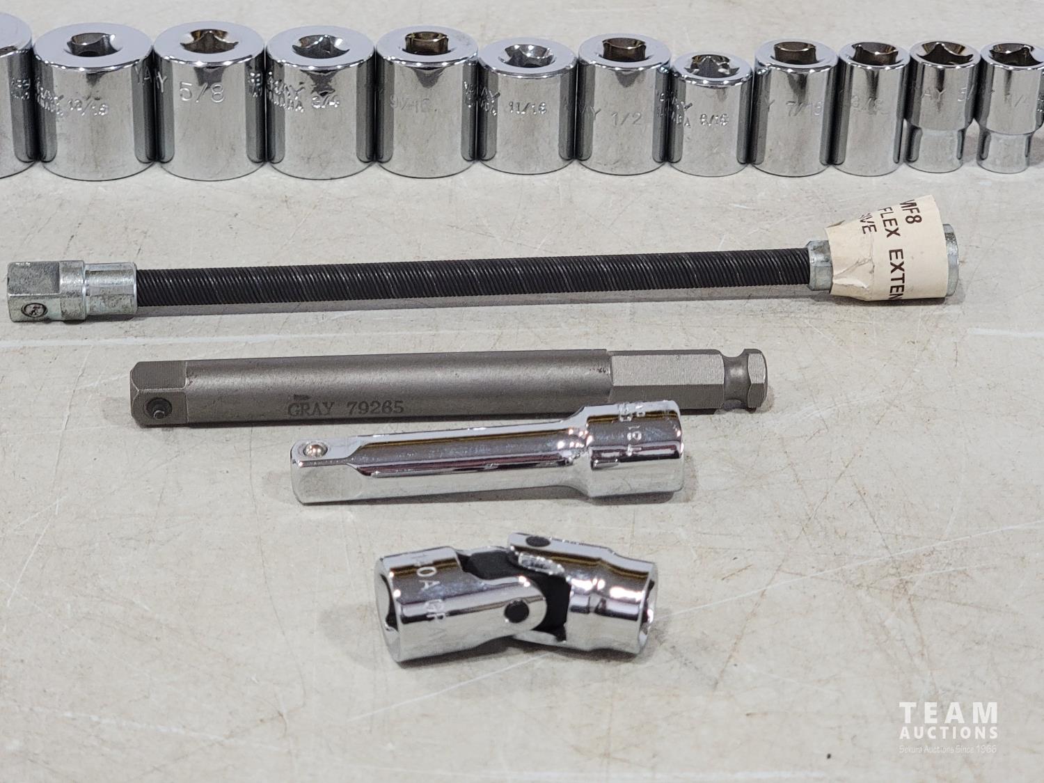 1995 Gray Tools 18 Piece 3/8 Inch Drive SAE Sockets and Extensions (Unused)