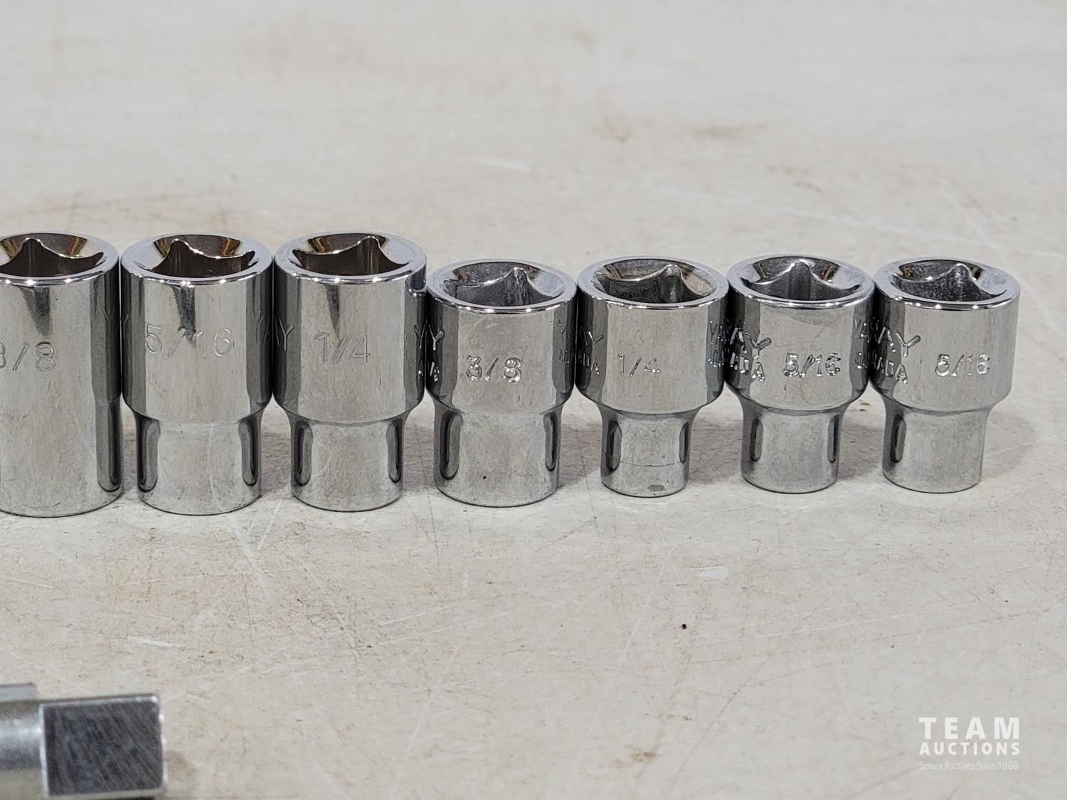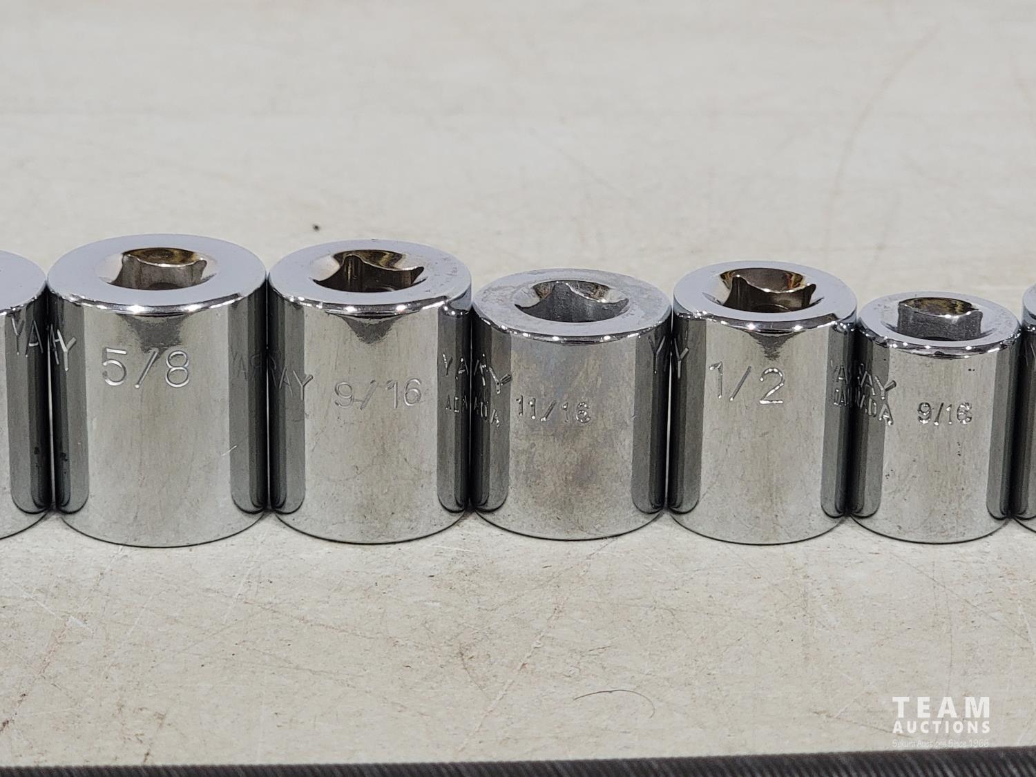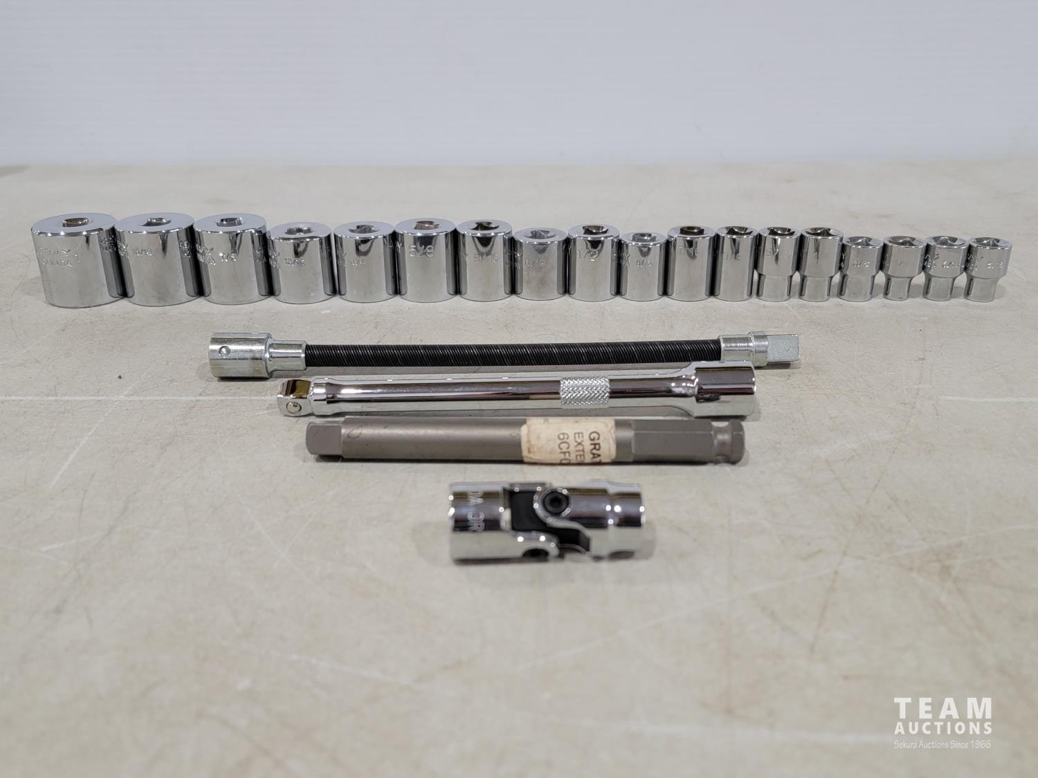 1994 Gray Tools 19 Piece 3/8 Inch Drive SAE Sockets and Extensions (Unused)