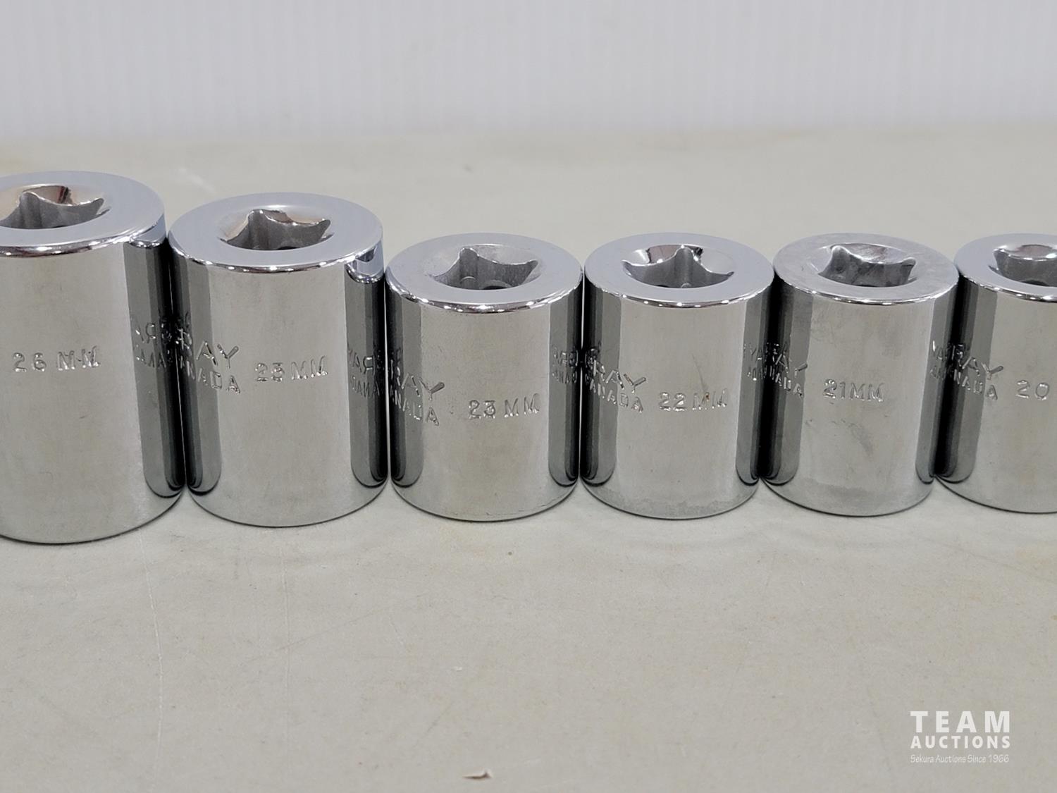 1953 Gray Tools 21 Piece 1/2 Inch Drive 6 PT Metric Sockets (Unused)