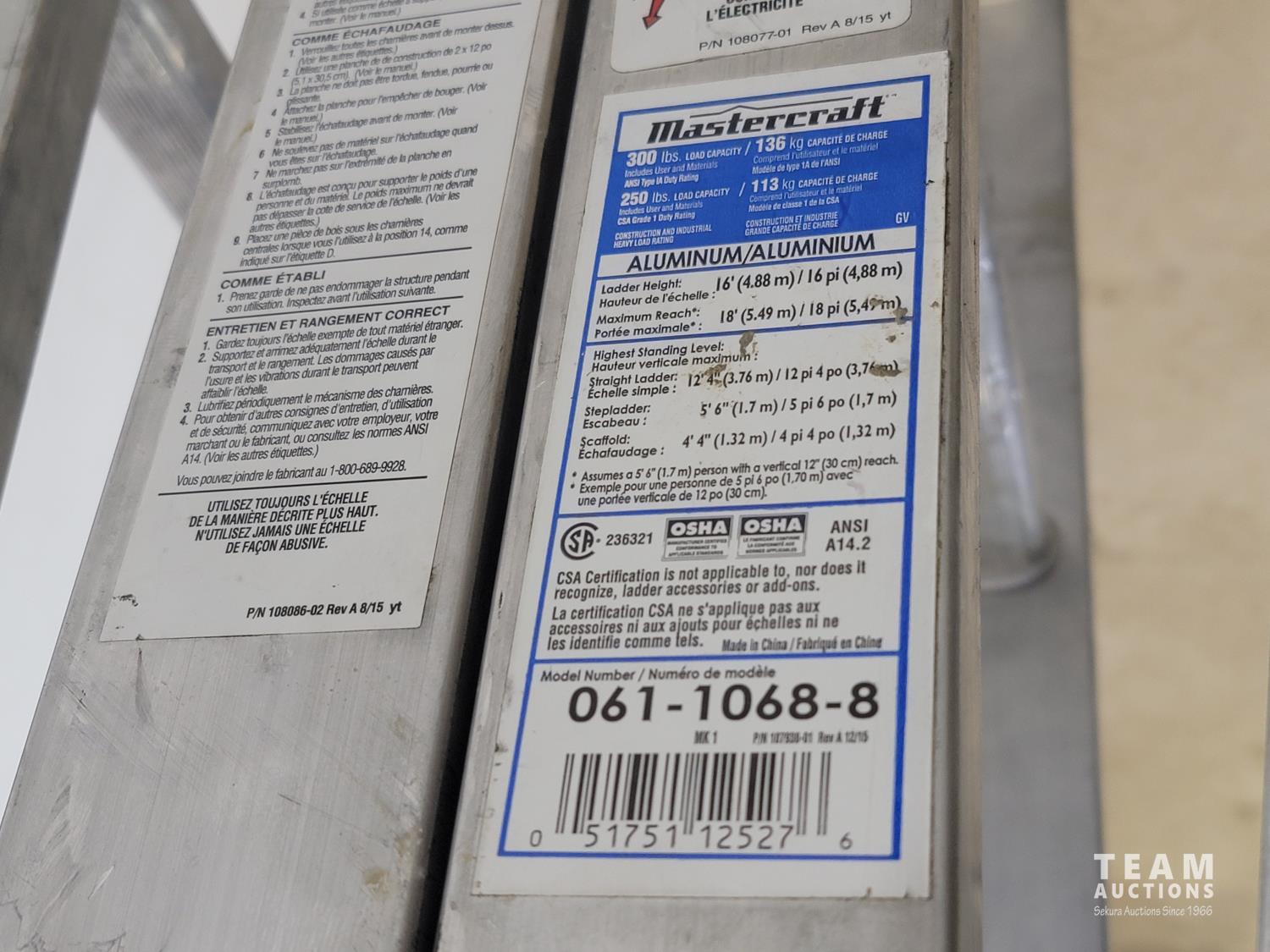 1016 Mastercraft Aluminum Folding Ladder