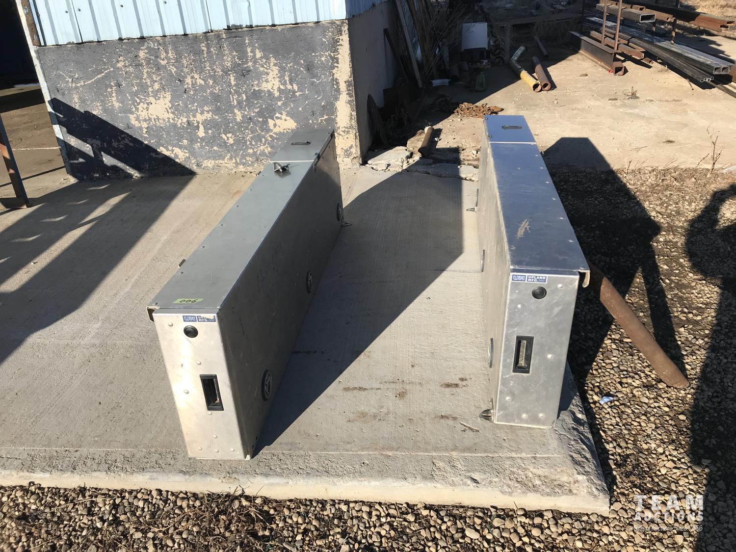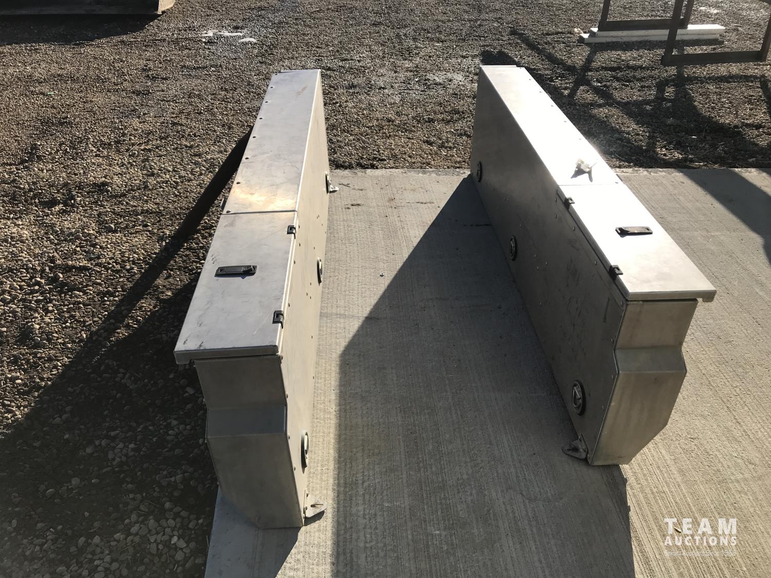 2420 Pair of Upland Mfg 76 Inch Stainless Steel Truck Saddle Tool Boxes