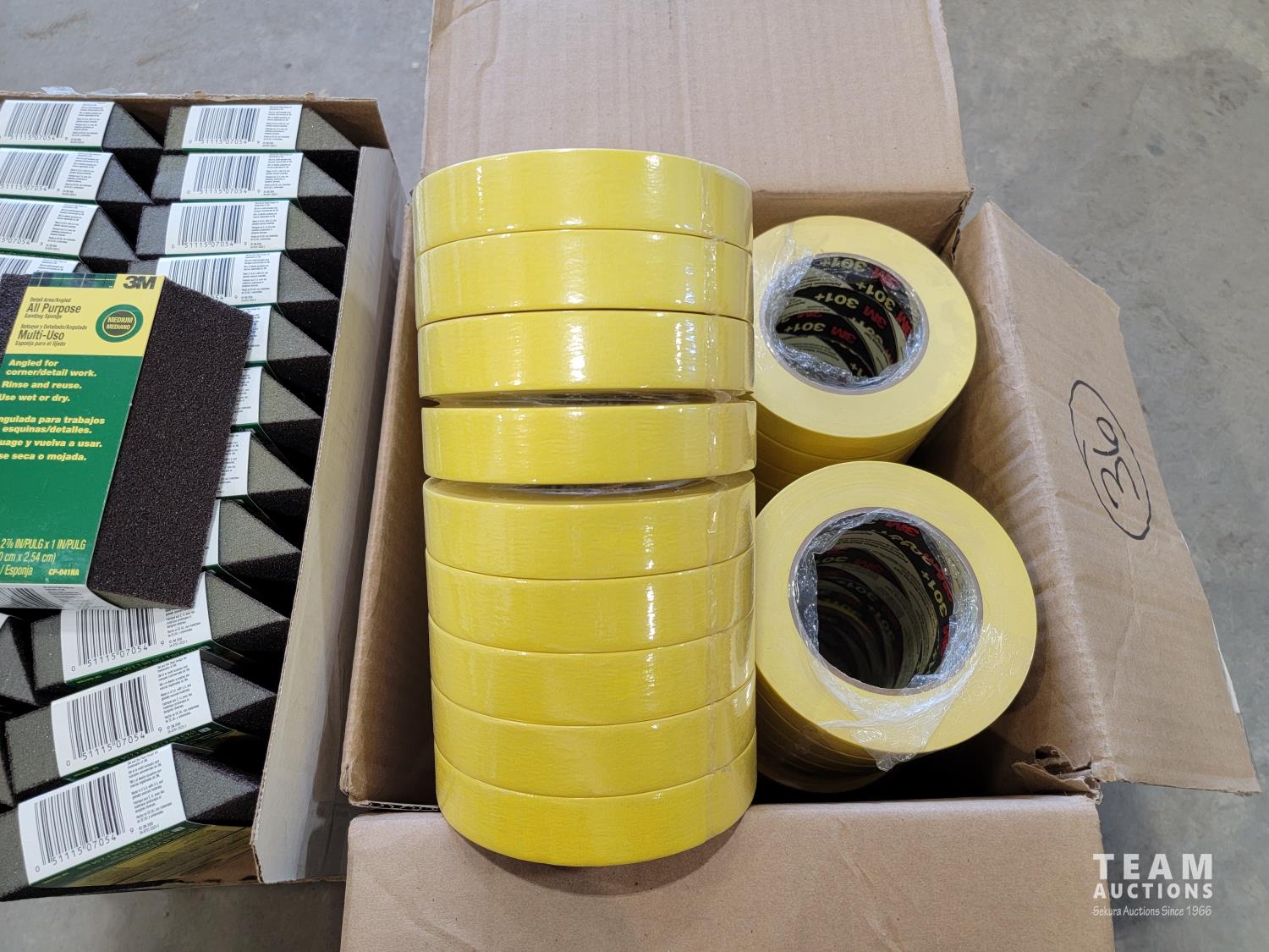 1431 Qty of 3M Sanding Sponges and (36) Rolls of 3M Yellow Masking Tape (Unused)