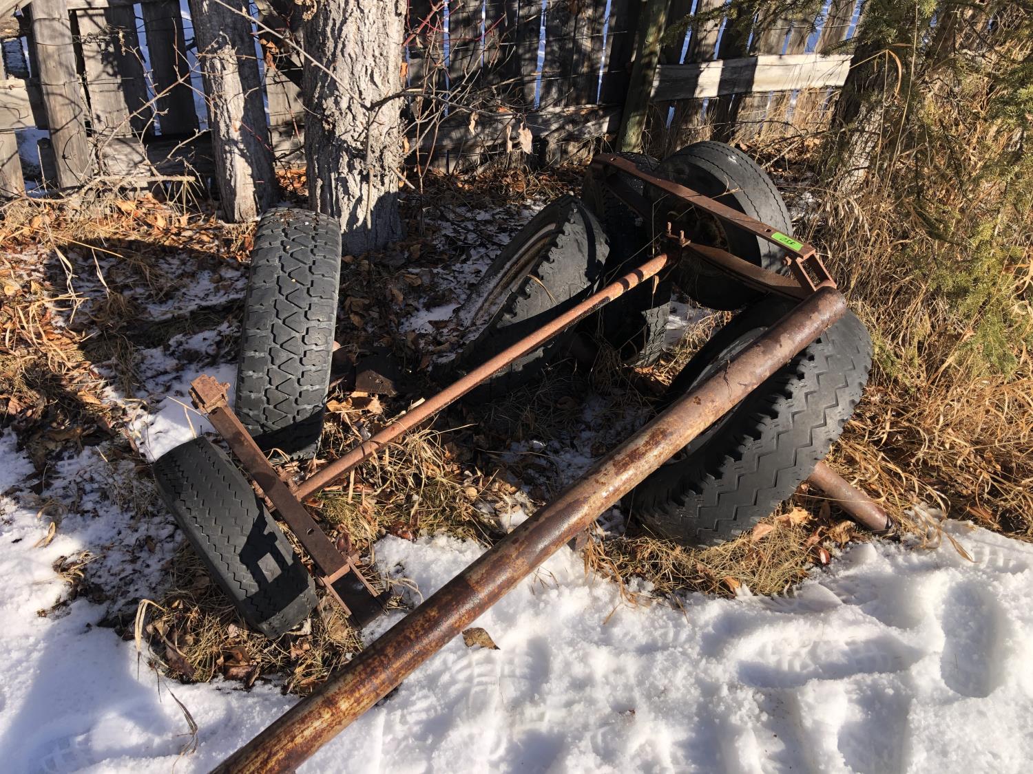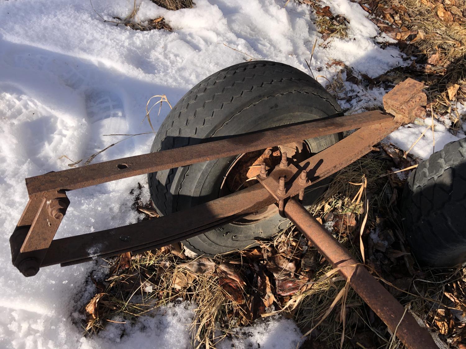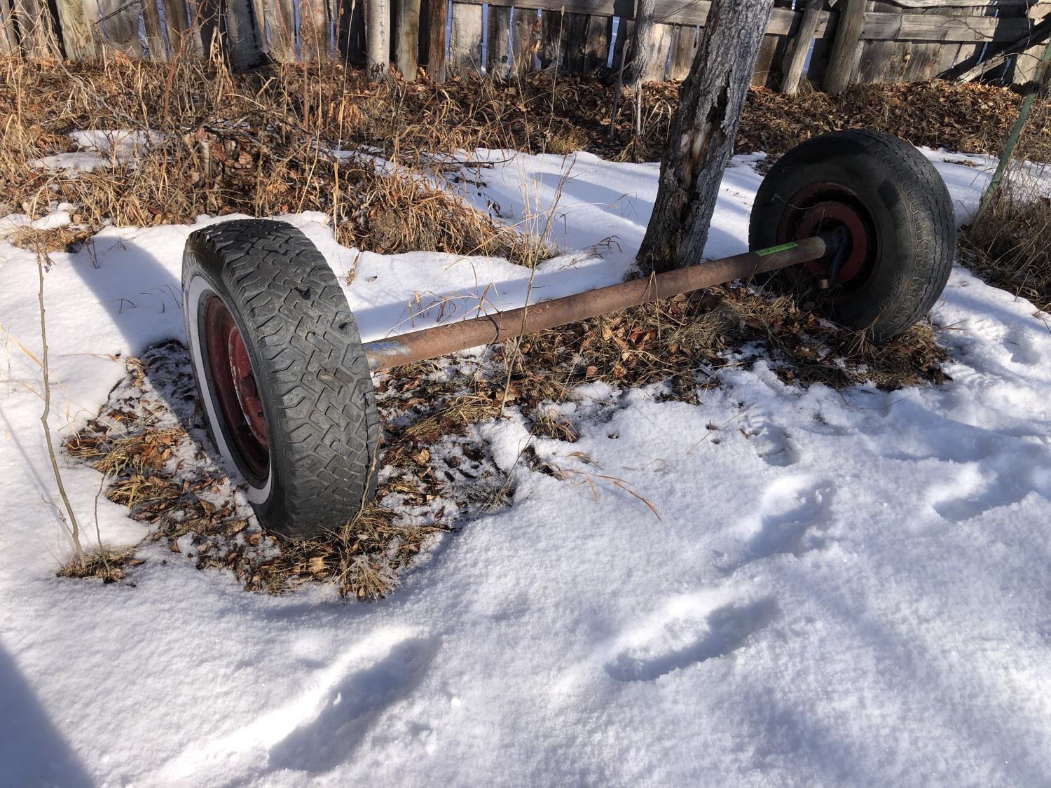 5 bolt 6 ft axle 235/75SR15, 4 bolt utility wagon 4 ft axle with 5.70-8 tires, assorted 5 bolt rims with adjustable axle