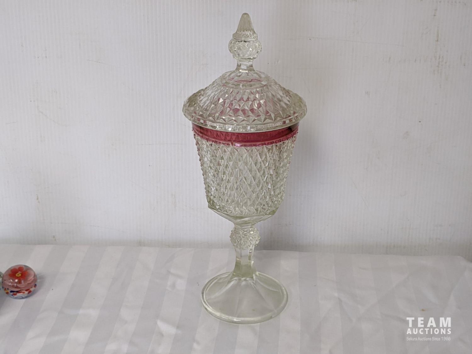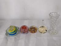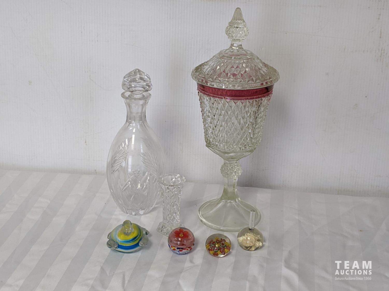 crystal decanter, crystal vase, glass candy jar, glass paper weights