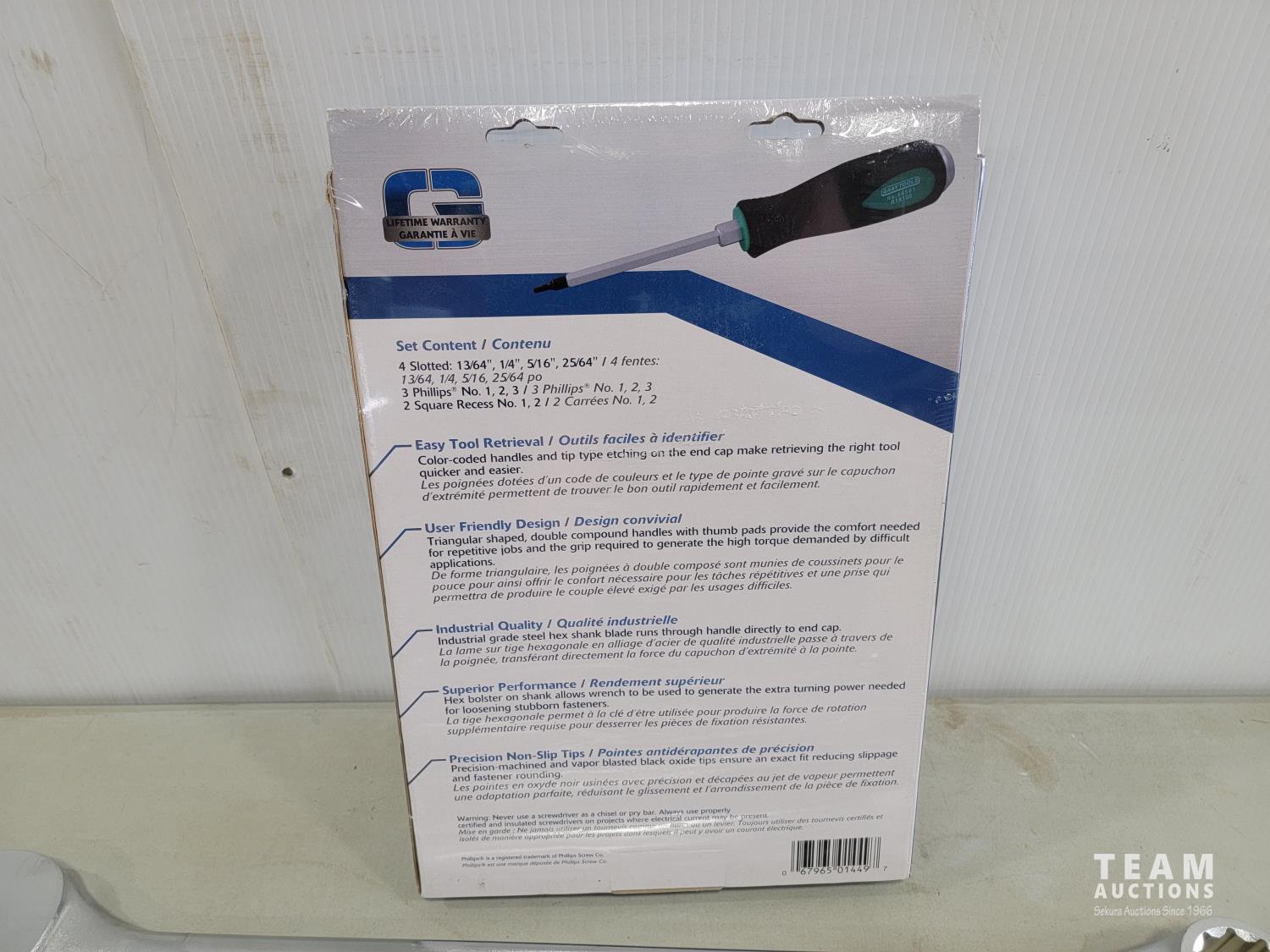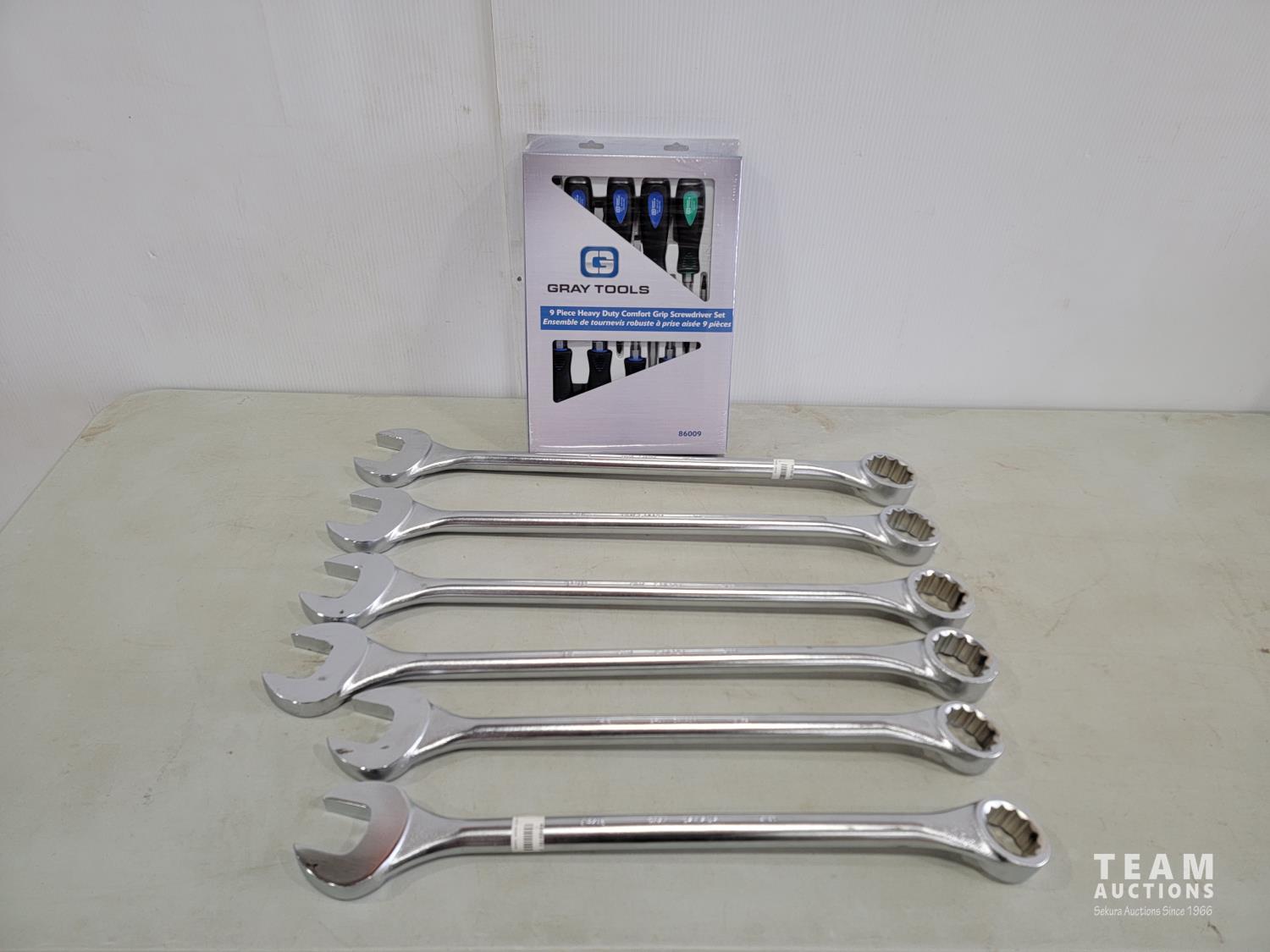 9 piece heavy duty comfort grip screwdriver set, (6) wrenches sizes: 2 inch, 1-15/16 inch, 1-13/16 inch, 1-7/8 inch, 1-5/8 inch, 1-9/16 inch