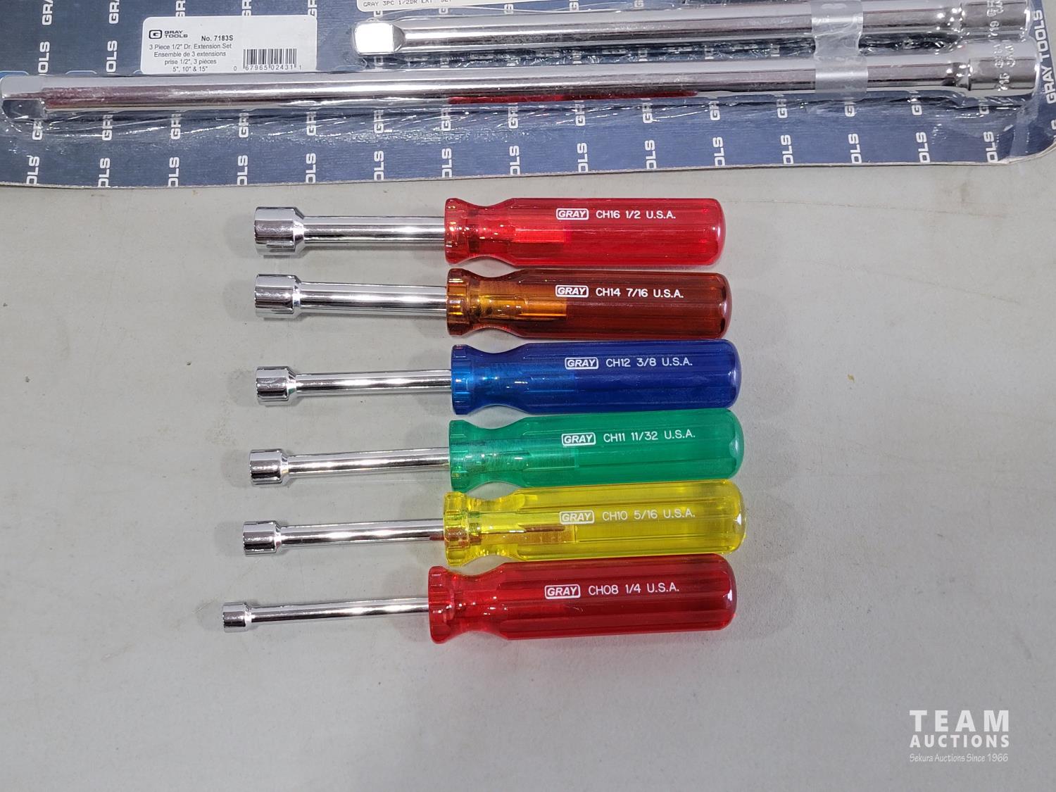 1962 Gray Tools 18 Piece 1/2 Inch Drive 12 PT SAE Deep Sockets (Unused)